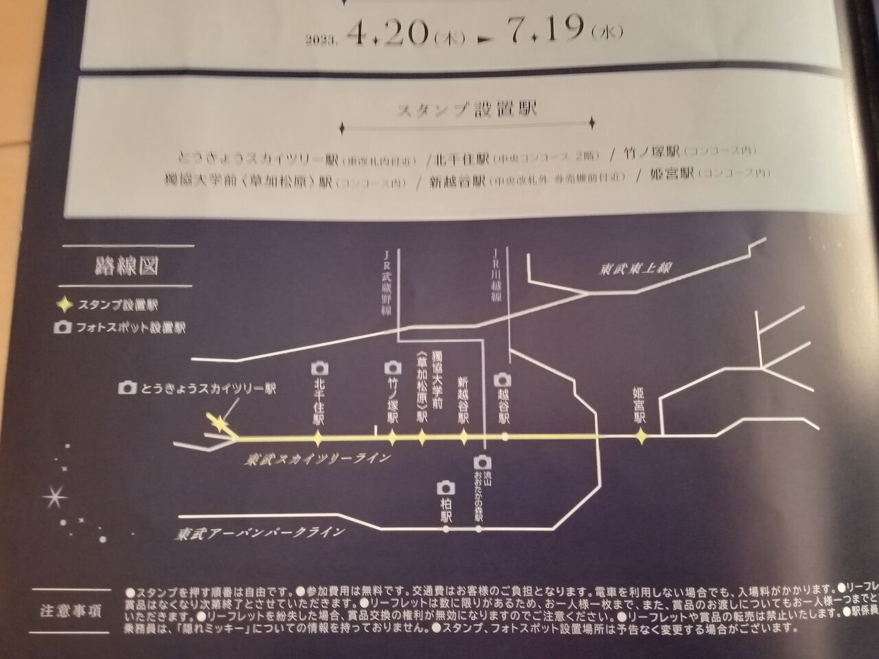 今回はスタンプ駅はすべて周り、フォトスポットはスカイツリーラインにあるところだけ回ることに。