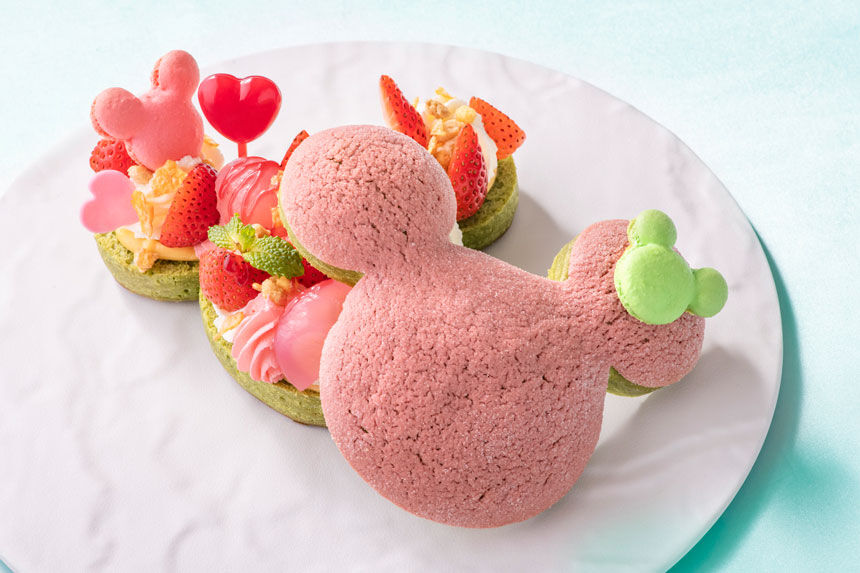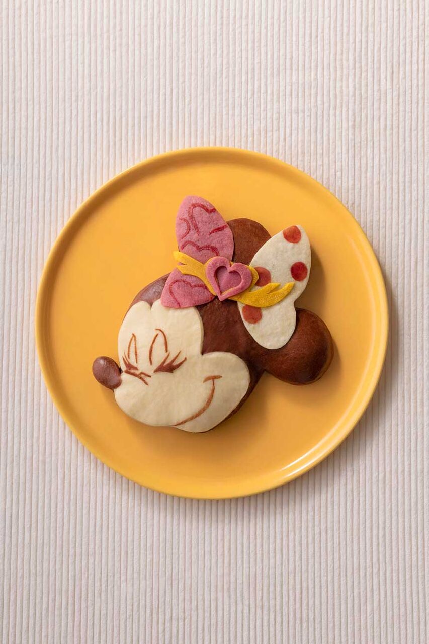 ミニーちゃんのリボンをかたどった イチゴメロンパン