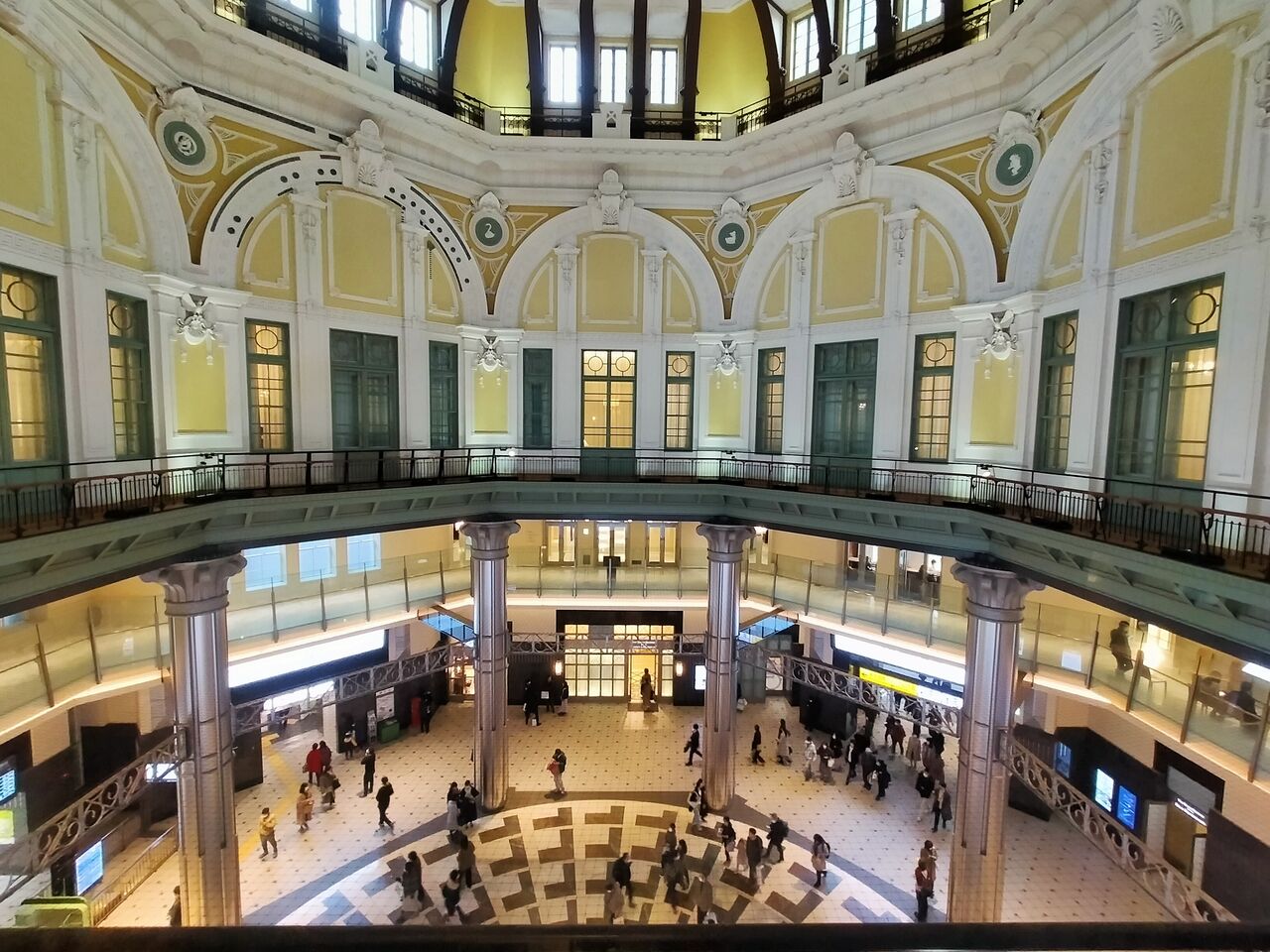 眼下には、東京駅を利用する多くの人たちの姿。