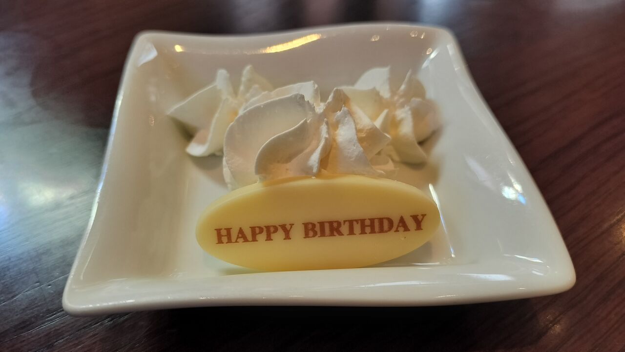 2024年01月02日 驚きのうれしいサプライズ カナレットでランチ② 頑張らないで超まったり楽しむディズニークリスマス2023ディズニーシー編その10 2023年12月上旬の平日インパ ディズニークリスマス2023ディズニーシー編 続きです。リストランテディカナレットでクリスマスパスタセットを楽しんでたら デザートプレートの後にキャストさんがこちらを持ってきてくれました。誕生日プレート付き生クリーム。椅子の背もたれにかけてあった上着につけていた誕生日シールに気が付いてくれてのサプライズだったようで、うれしいびっくり。生クリームはミッキーになっていました。デザートにチョコプレートを付けるんじゃなくて別なんですね。こちらは生クリーム大好きな夫が美味しく頂きました。そしてもう一つ、驚きのサプライズ。キャストさんが誕生日シールを持ってきてくれたんですが、上にシェフのミッキーシールがついてミッキーになってる(笑)「お誕生日の方へは特別にお渡ししてるんです」と笑顔のキャストさんから受け取りました。パークでもらえるキャラクターシールといえば、子どもが小さい頃にもらっていた記憶が。家にもたくさんのシールが残っていますが、大人だけで来ていてもらったのは初めてです。 お酒と誕生日サプライズで上機嫌でカナレットを出て、次の場所へ向かいます。つづく。お年賀に持っていきたい美味しいお菓子 今年のお正月は暖かいい? 本ページはアフィリエイトプログラムによる収益を得ていますホテル予約はお早めに近くて便利 オフィシャルホテル グランドニッコー東京ベイ 舞浜 ホテルオークラ東京ベイ シェラトン・グランデ・トーキョーベイ・ホテル 東京ベイ舞浜ホテル 東京ベイ舞浜ホテル ファーストリゾート シェラトン・グランデ・トーキョーベイ・ホテル部屋タイプが豊富なパートナーホテル 三井ガーデンホテル プラナ東京ベイ ホテルエミオン東京ベイ オリエンタルホテル東京ベイ 浦安ブライトンホテル東京ベイ シャトルバスもある便利な新浦安のホテル 東京ベイ東急ホテル コンフォートスイーツ東京ベイ イビススタイルズ東京ベイ ハイアット リージェンシー 東京ベイ ホテルアフタヌーン・ハイティーの予約は一休がオススメ<a href="//ck.jp.ap.valuecommerce.com/servlet/referral?sid=3667003&pid=888594278" rel="nofollow"><img src="//ad.jp.ap.valuecommerce.com/servlet/gifbanner?sid=3667003&pid=888594278" border="0"></a>楽天ユーザーなら絶対登録したほうがお得本ページはアフィリエイトプログラムによる収益を得ていますランキング参加してみました。良かったらポチお願いします。にほんブログ村"