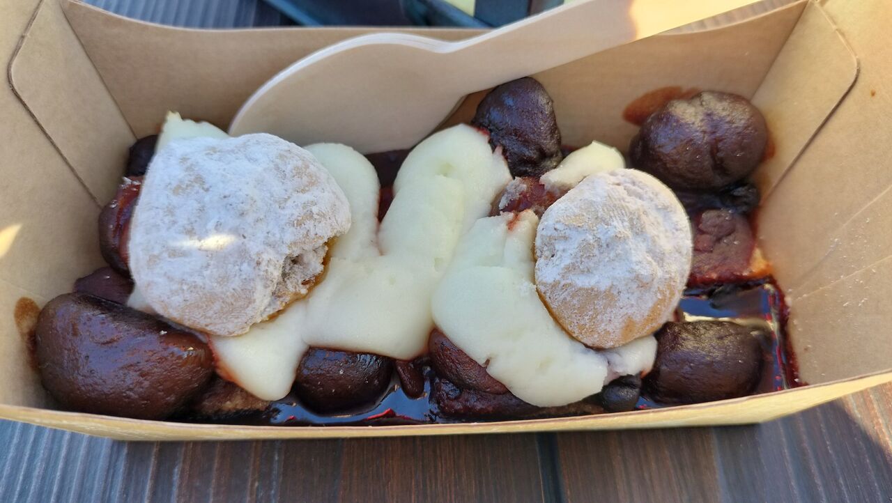 2024年01月03日 甘党絶賛!ブルートラックのベイクドドルチェ 頑張らないで超まったり楽しむディズニークリスマス2023ディズニーシー編その11 2023年12月上旬の平日インパ ディズニークリスマス2023ディズニーシー編 続きです。カナレットで会計をして外に出た瞬間、夫が「朝見たフードトラックのデザートが食べたい」と。食べたばかりですが、おやつにします。午前中はレッドのフードトラックでホットサングリアを飲みましたが、今回はブルー。クリスマスリースも飾られているブルーのフードトラックは待ち時間ゼロ。売られているのは、ベイクドドルチェ(マロン&カシス)¥900 のみ。こちらで頂きます。アマレッティとフロマージュクリーム、たっぷりの栗、カシスソースを組み合わせたスウィーツです。という温かいデザートです。アマレッティというのは焼きメレンゲなんですね。クリームの上に乗っているのがそれ。アーモンドパウダーを使っているらしく、ちょっと個性的なお味。栗もしっかり粒。カシスの実も入っていて下にはソースを染み込ませたスポンジもちょっと入ってたような記憶。甘党の夫は大絶賛していたので、美味しいんだと思われます。ただこのブルーのフードトラック。見ていた限りでは向かい側のレッドに比べて、購入する人はかなり少ない。一緒にホットコーヒーやレッドトラックのドリンクを一緒に買えたら、もっと売れるんじゃないかと思ったり。甘いデザートを堪能したあとは、日の向きが変わって撮りやすくなったツリーを見たりウォーターフロントパークの薔薇を愛でたり40周年のフォトスポットをめぐったり唯一とっていた、ニモ&フレンズ・シーライダーに乗ったりとゆったりと楽しみます。夕方になり、パーク内のイルミネーションが付き始めます。つづくバレンタインのチョコ そろそろ選び始めよう 本ページはアフィリエイトプログラムによる収益を得ていますホテル予約はお早めに近くて便利 オフィシャルホテル グランドニッコー東京ベイ 舞浜 ホテルオークラ東京ベイ シェラトン・グランデ・トーキョーベイ・ホテル 東京ベイ舞浜ホテル 東京ベイ舞浜ホテル ファーストリゾート シェラトン・グランデ・トーキョーベイ・ホテル部屋タイプが豊富なパートナーホテル 三井ガーデンホテル プラナ東京ベイ ホテルエミオン東京ベイ オリエンタルホテル東京ベイ 浦安ブライトンホテル東京ベイ シャトルバスもある便利な新浦安のホテル 東京ベイ東急ホテル コンフォートスイーツ東京ベイ イビススタイルズ東京ベイ ハイアット リージェンシー 東京ベイ ホテルアフタヌーン・ハイティーの予約は一休がオススメ<a href="//ck.jp.ap.valuecommerce.com/servlet/referral?sid=3667003&pid=888594278" rel="nofollow"><img src="//ad.jp.ap.valuecommerce.com/servlet/gifbanner?sid=3667003&pid=888594278" border="0"></a>楽天ユーザーなら絶対登録したほうがお得本ページはアフィリエイトプログラムによる収益を得ていますランキング参加してみました。良かったらポチお願いします。にほんブログ村"
