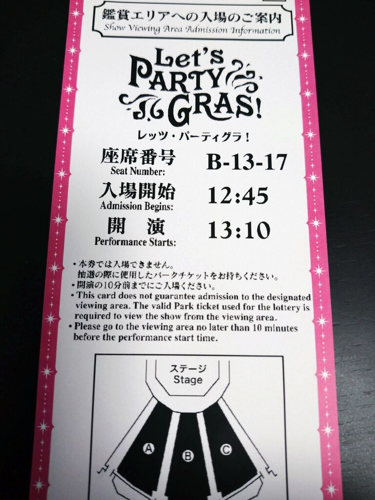 大体どの日も、まずランドに入って 12時前位に13時頃のショーを抽選
