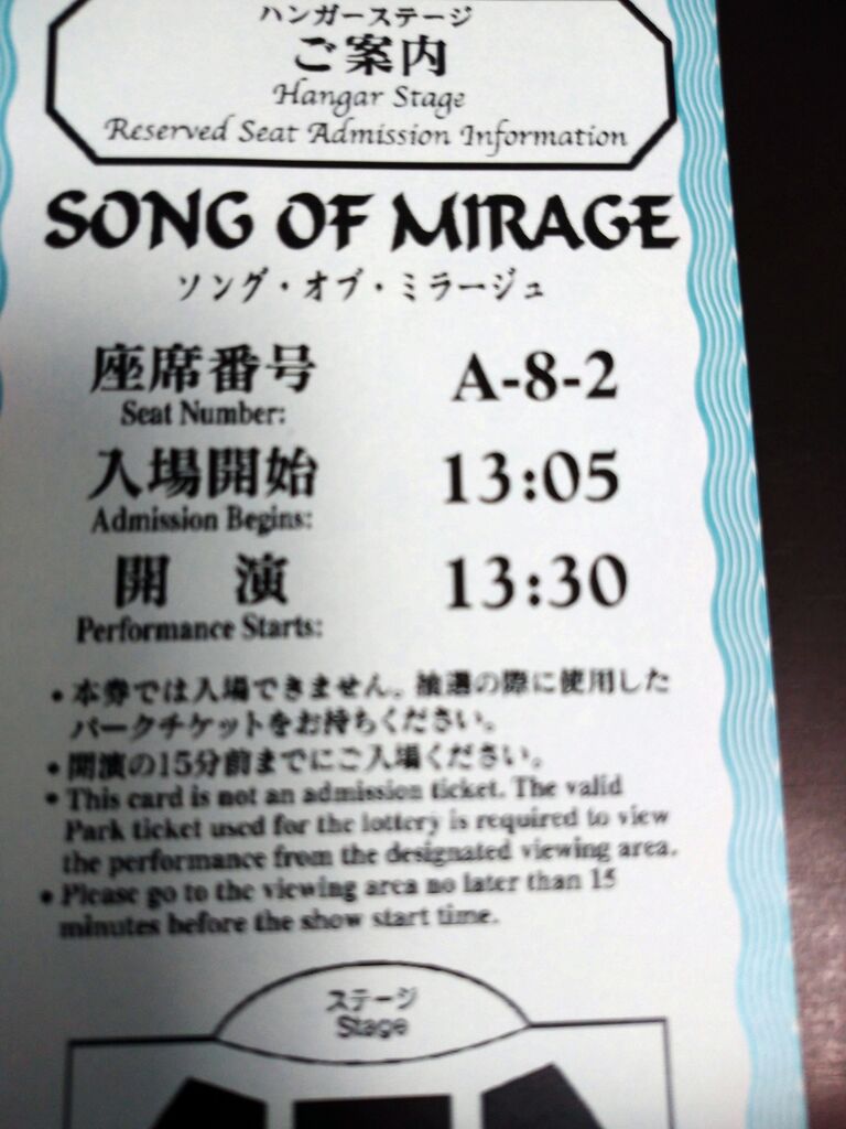 はずれたらシーに徒歩移動して 12時半位に13:30~14:00のショー抽選