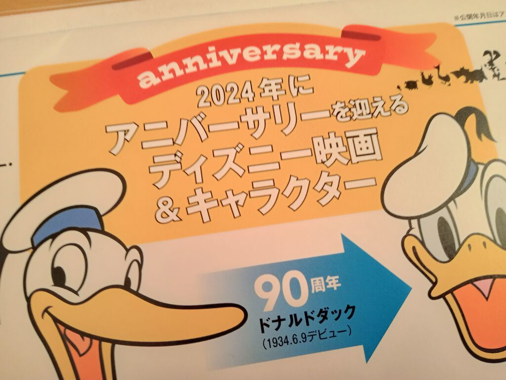 ドナルド以外にも周年記念のキャラクターや作品一覧もカレンダーの裏表紙に載っています。