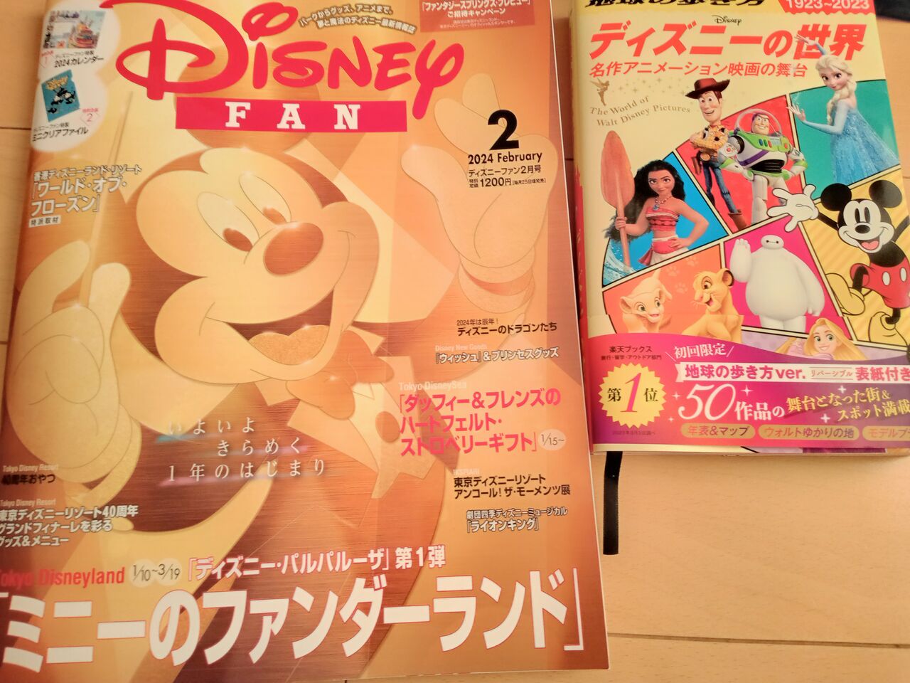 2024年カレンダーが付録でついてくる ディズニーファン2月号と地球の歩き方「ディズニーの世界」を買いました。