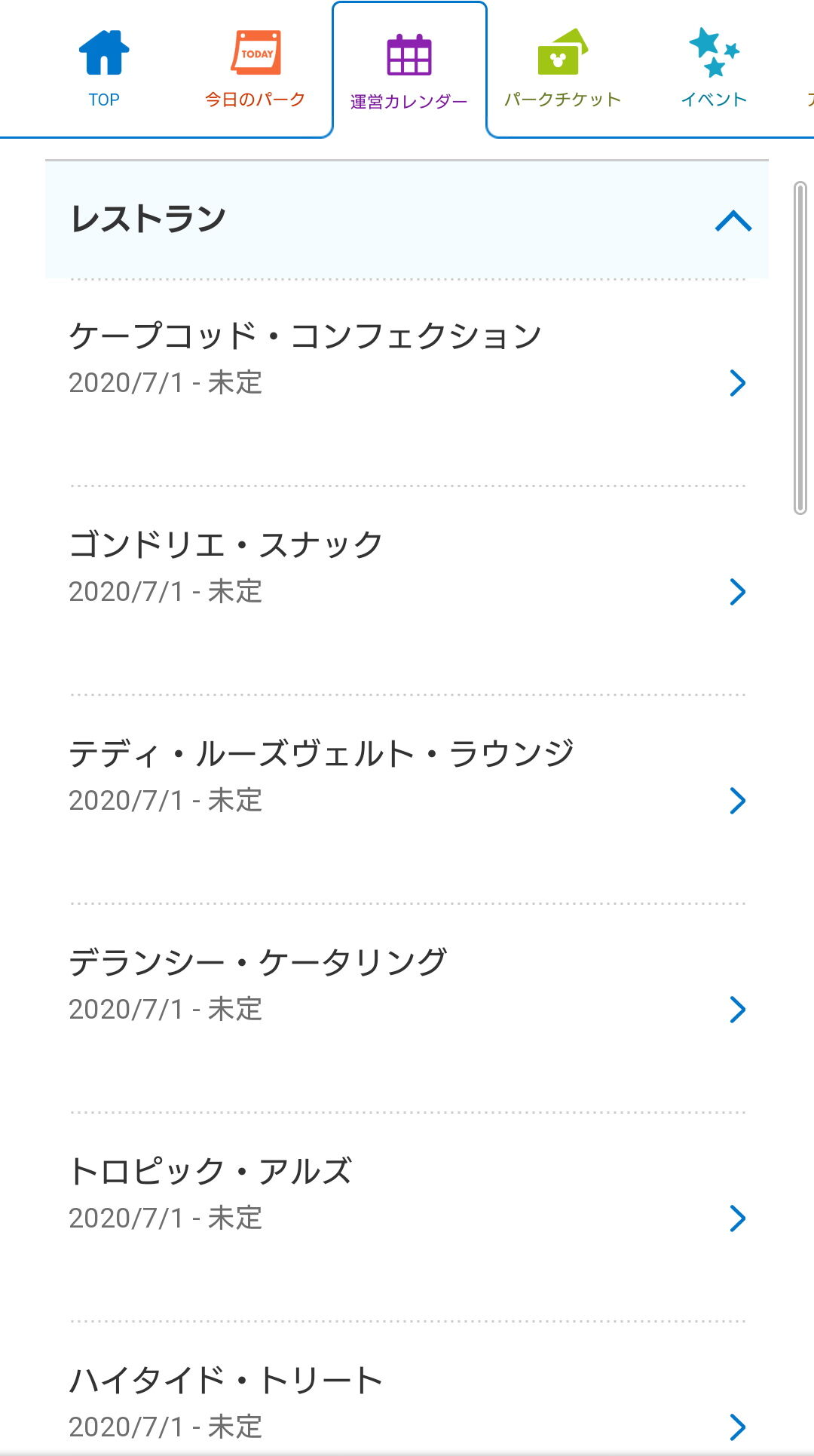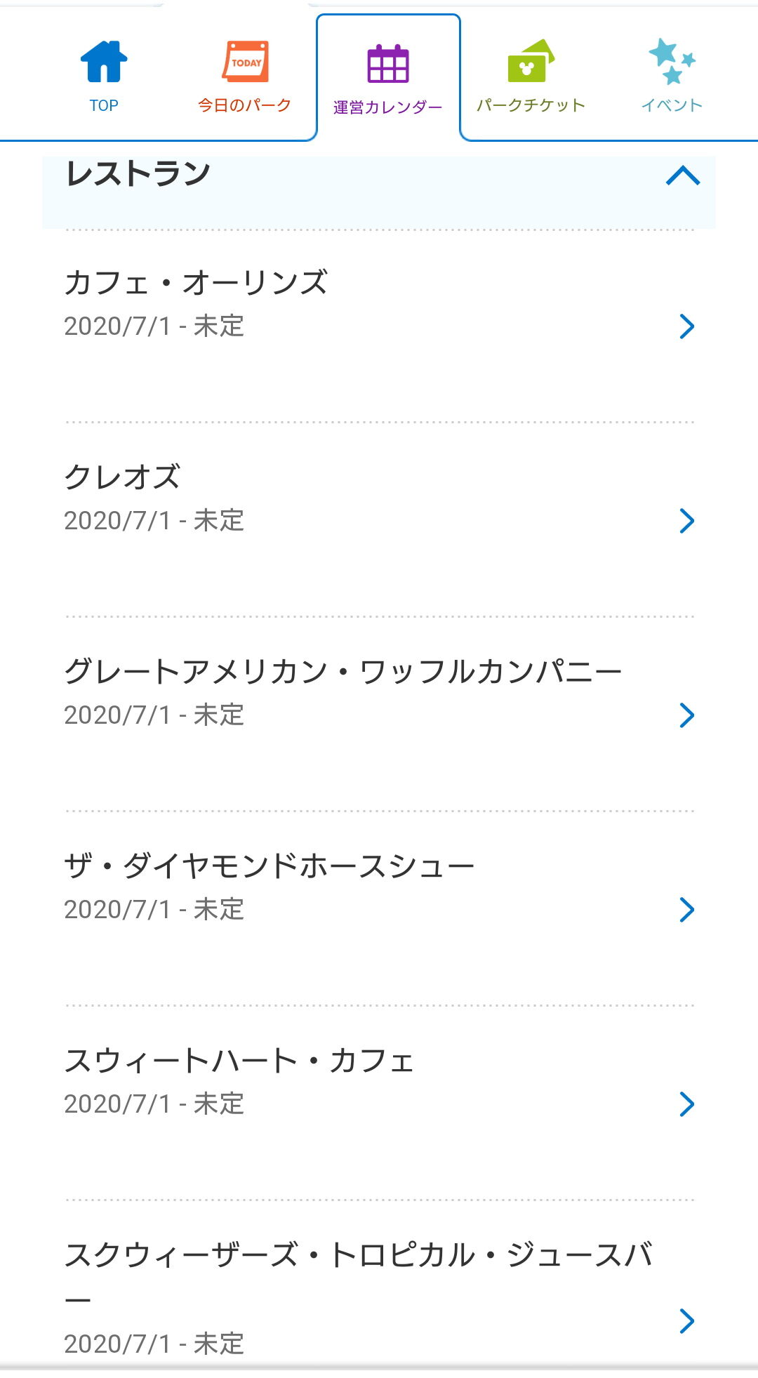 ディズニーランドの、クレープも、ミッキーワッフルもスイートハートカフェも未定。