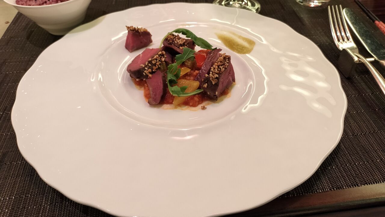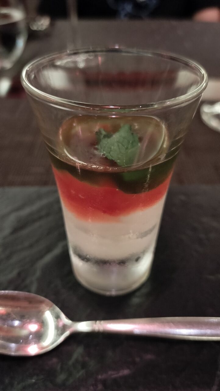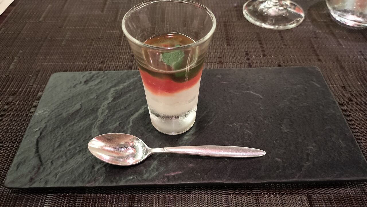 ■ストラッキーノとトマトのヴェリーヌ アンチョヴィとミントオイル■天使の海老とフェンネルのサラダ カラスミとグレープフルーツのポン酢ジュレ■アイナメのフリット ライム香る茄子とエゴマのエミュルジョン■デュカスパイスを纏った仔羊肉のロースト 青梅コンポートとアオリイカのラグーソースまたは牛テンダーロインのグリル ズッキーニのトンベ カシューナッツと黒胡麻ソース(別途¥1,700)■黒米のご飯■パイナップルのタルトタタン バナナパルフェ■ドリンク(お好きなドリンクをお選びください)・コーヒー・紅茶・マジカルアートドリンク(コーヒーリキッド、ミルク、ホイップ)