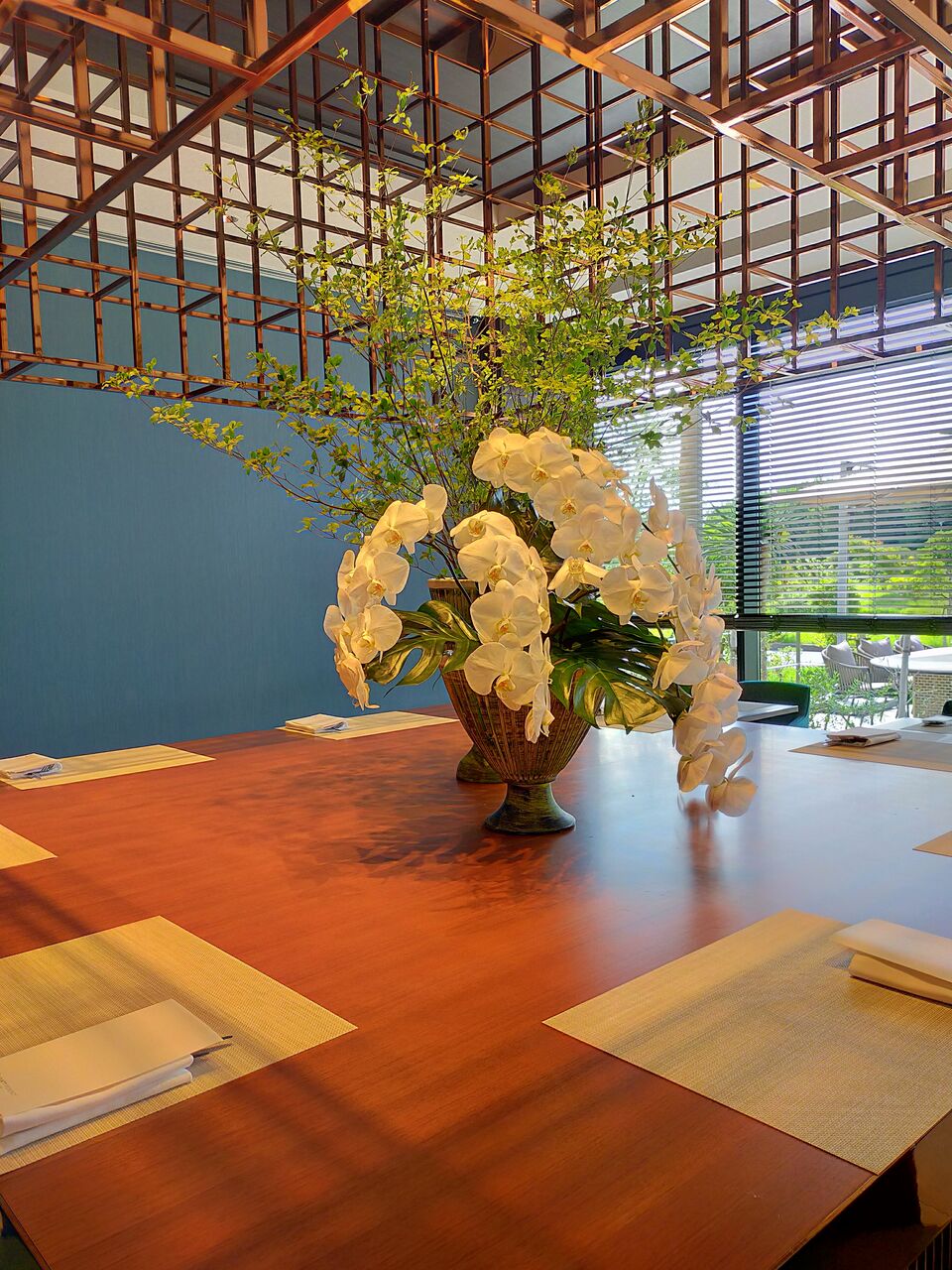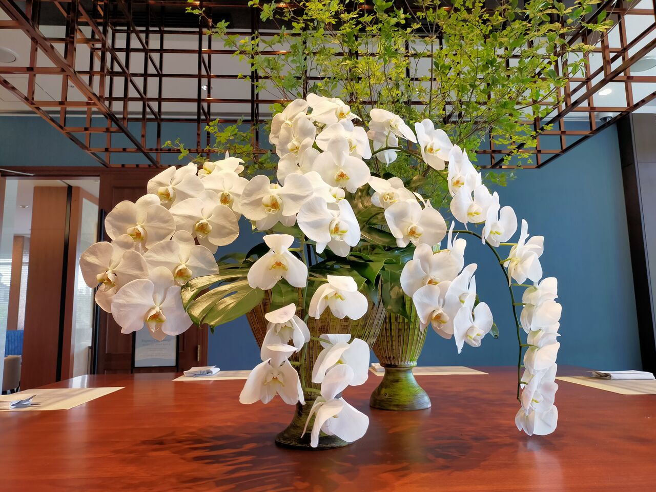 レストランにも開店お祝いの胡蝶蘭が飾られていました。