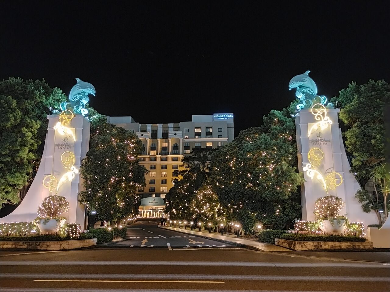 外からパークの夜景や花火、ホテルのイルミネーションを楽しみ