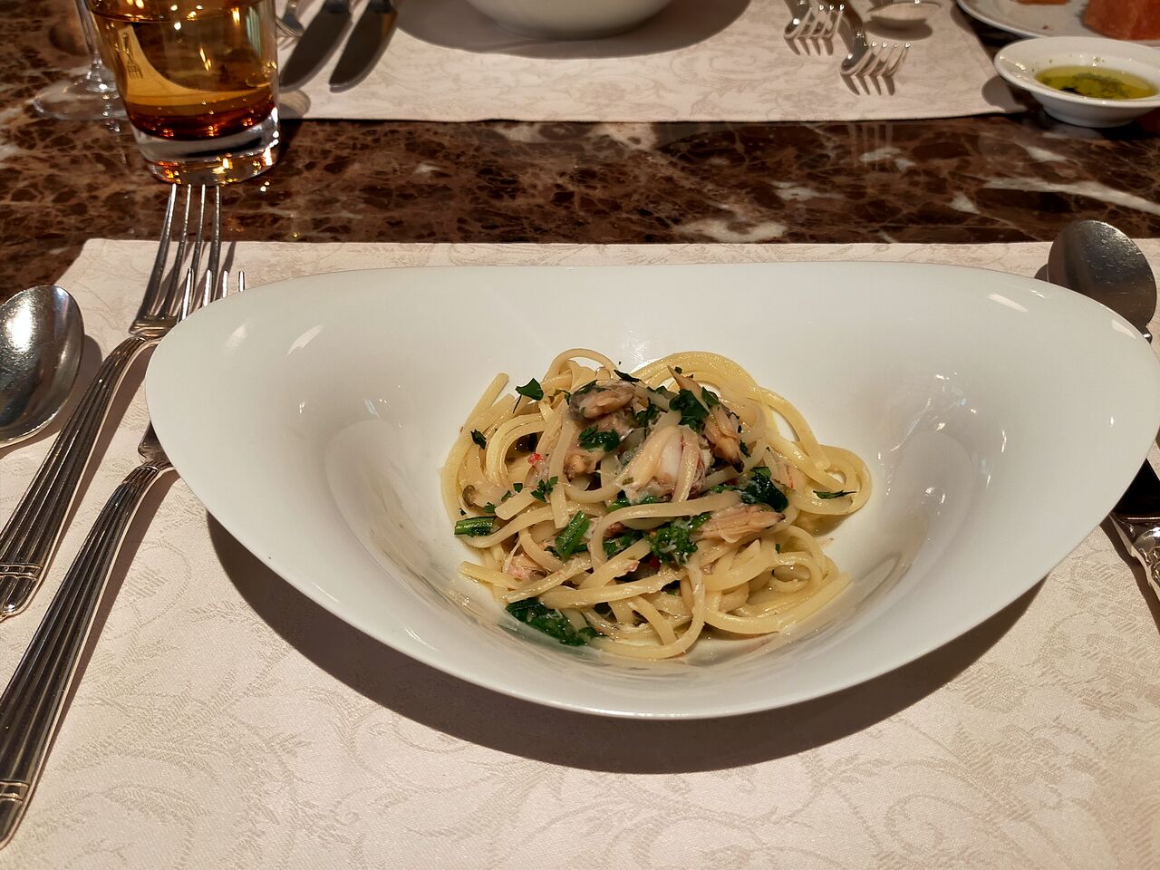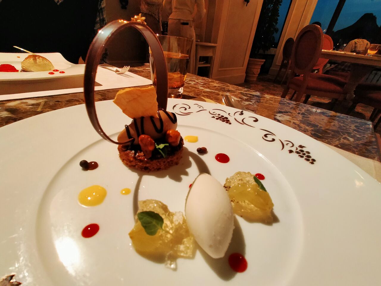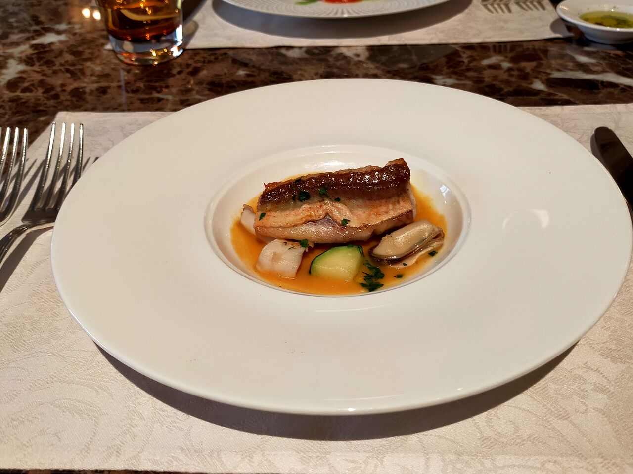 ■スモークサーモンと蕪 オリーヴパウダー チキンとアーティチョークのマリネ オニオンレーズンディップ■シーフードとトマトラグーのパスタ 彩り野菜 バジル風味のモッリーカ■本日の魚のインパデッラ 海老とイイダコ ズッパ・ディ・ペッシェまたはポークフィレ肉のアッロースト クルミのサルサ ポークのブラザート 白インゲン豆のピュレ■ティラミス みかんソルベ■コーヒー または 紅茶