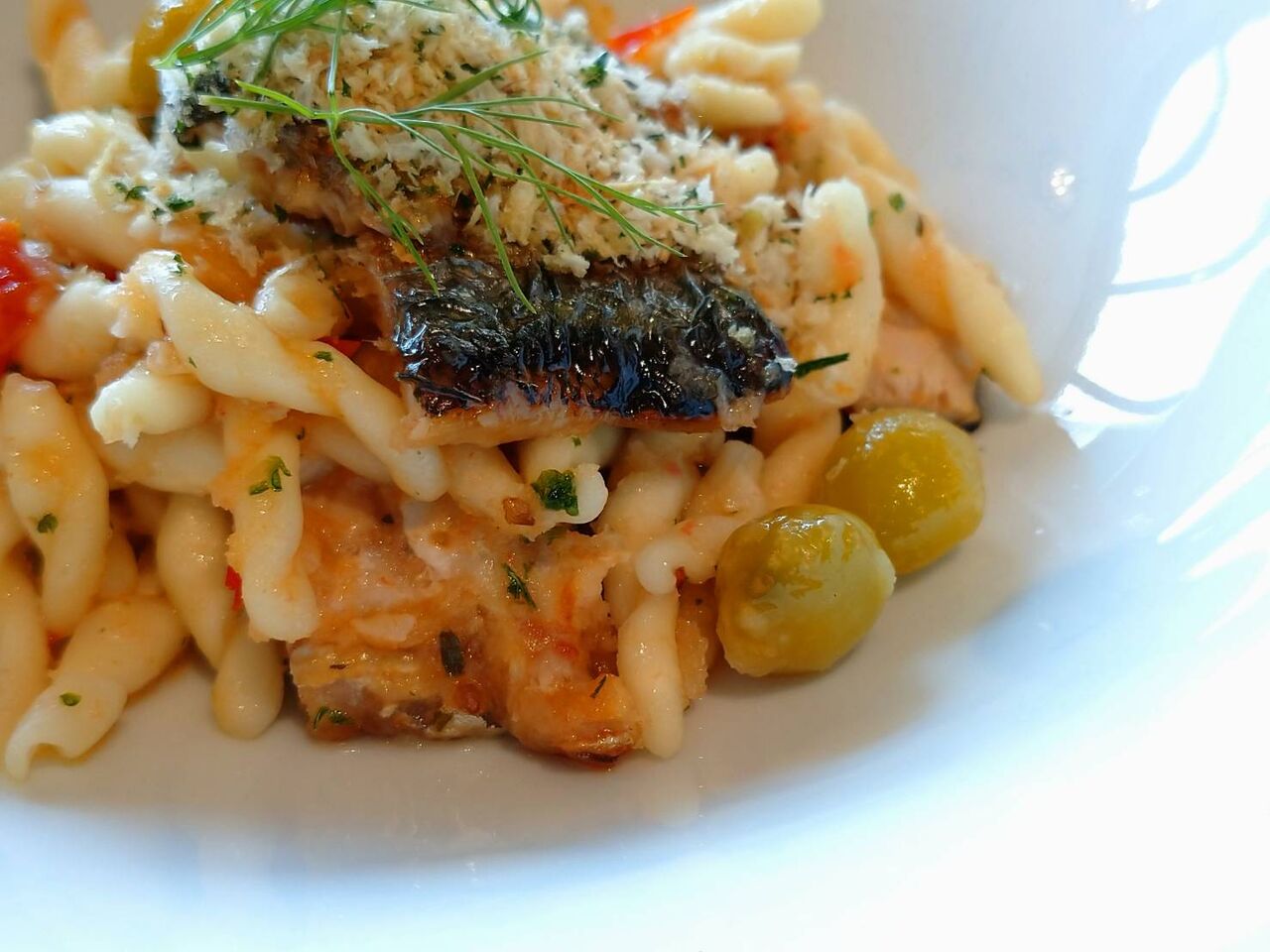 つぶ貝の風味とカラスミが白ワインによく合って美味しい。