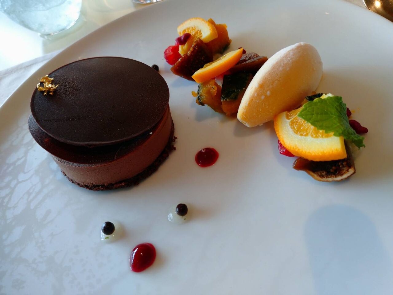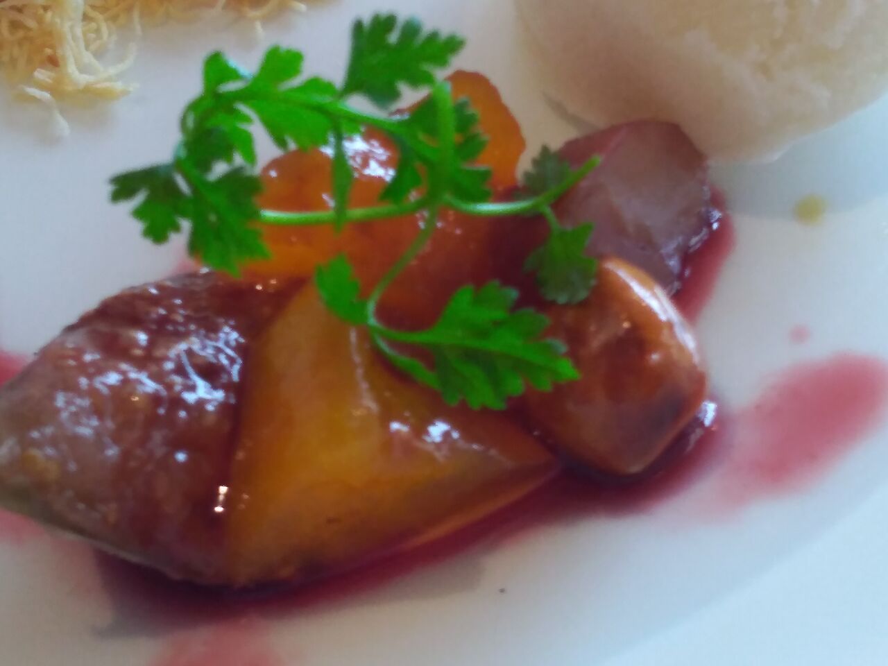 手前にある洋梨と無花果のジャムみたいなのが、鴨肉によく合って美味しい。