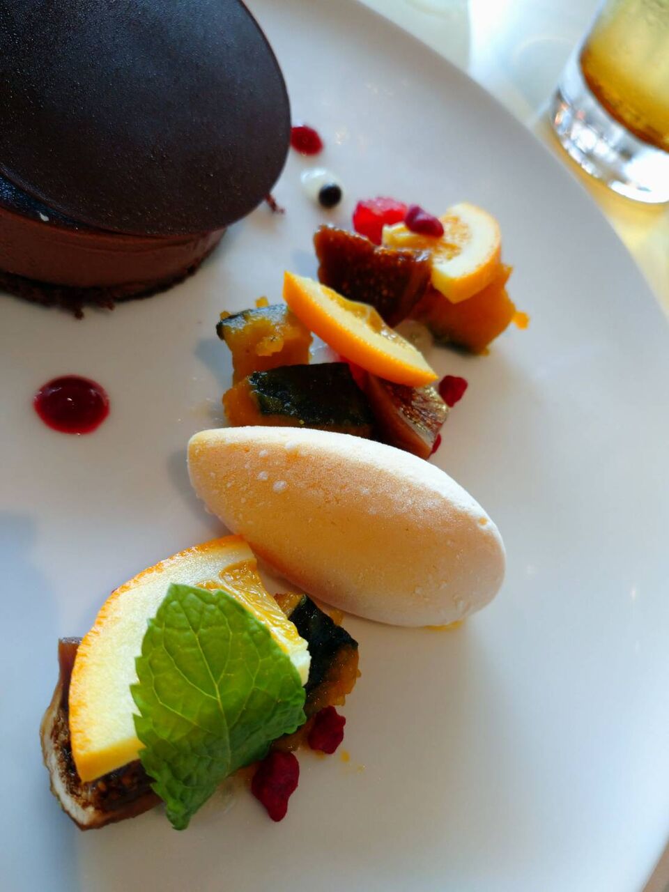 鴨むね肉のアッロースト キノコのトリフォラーティ 洋梨と無花果のマルメラータ