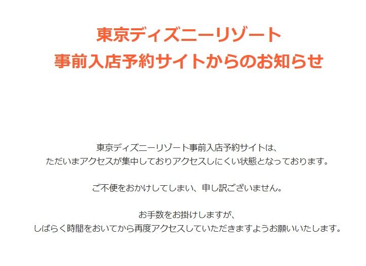 2023年04月06日 アカウント問題発生でログインすら出来ず・・・ ボンヴォヤージュ事前来店予約始まってた ボンヴォヤージュが4/10~12まで事前来店予約が必要ということで、TDR40周年グッズが販売されるようですが・・・ 「待合室システム」が導入されて待ち時間結構かかりますね。時間が来た?と思ったら、アクセス集中の赤い画面が出て何度かグルグルして再接続したあげく、システムエラー吐いた( ^ω^)・・・この後、トップページに戻ってログインからやり直そうと思ったら、これ。TDR予約・購入サイトには問題なくログイン出来たので、ボンヴォヤージュの予約システムが混雑している影響なのでしょうか・・・。これは4月5日 17時過ぎ。まぁ、アクセスするまでもなく予約は一杯でしょうね(見れてないけど!!)ボンヴォヤージュは諦めます。母の日の準備はお早めに ホテルアフタヌーン・ハイティーの予約は一休がオススメ<a href="//ck.jp.ap.valuecommerce.com/servlet/referral?sid=3667003&pid=888594278" rel="nofollow"><img src="//ad.jp.ap.valuecommerce.com/servlet/gifbanner?sid=3667003&pid=888594278" border="0"></a>楽天ユーザーなら絶対登録したほうがお得ランキング参加してみました。良かったらポチお願いします。にほんブログ村"