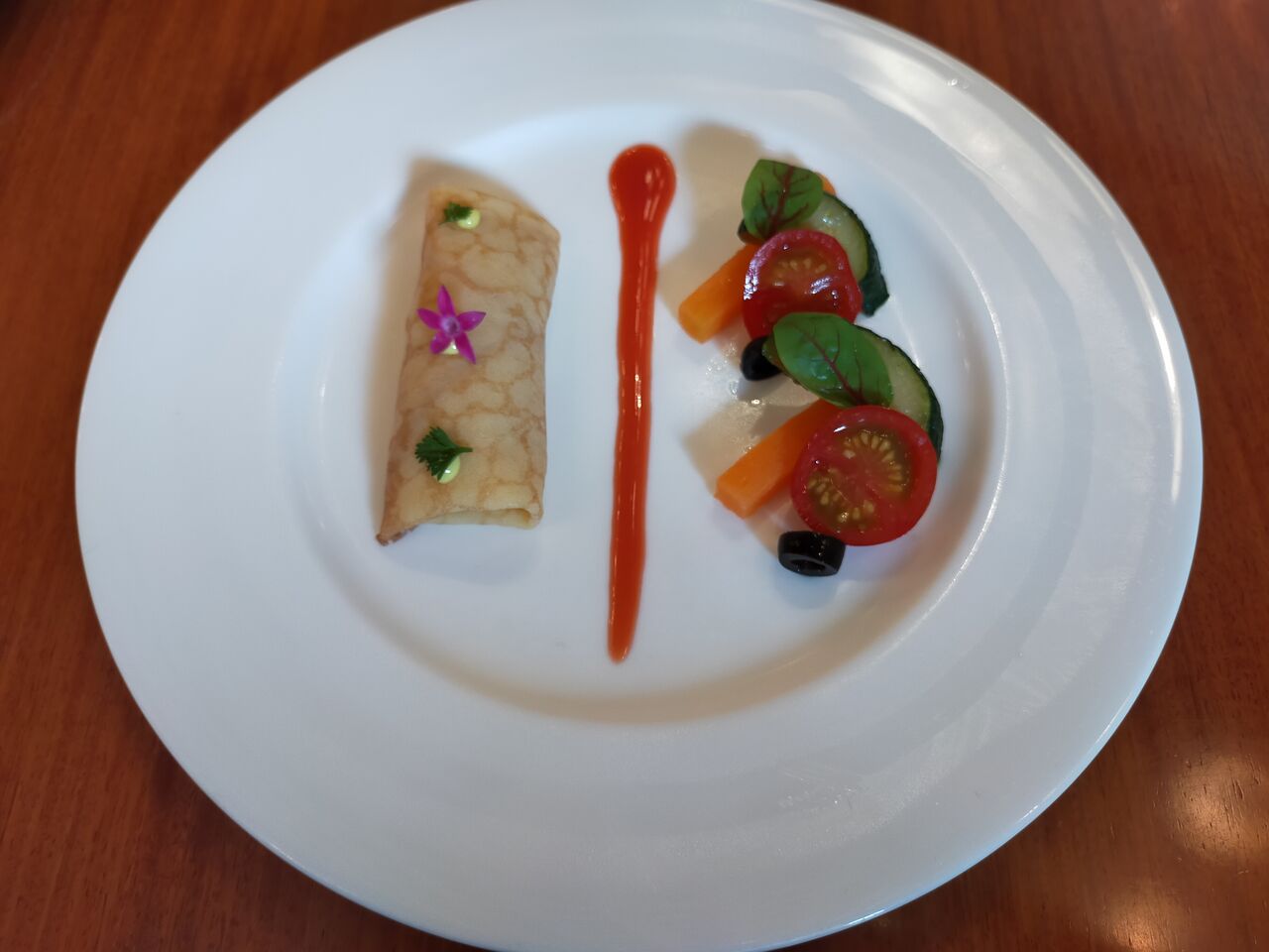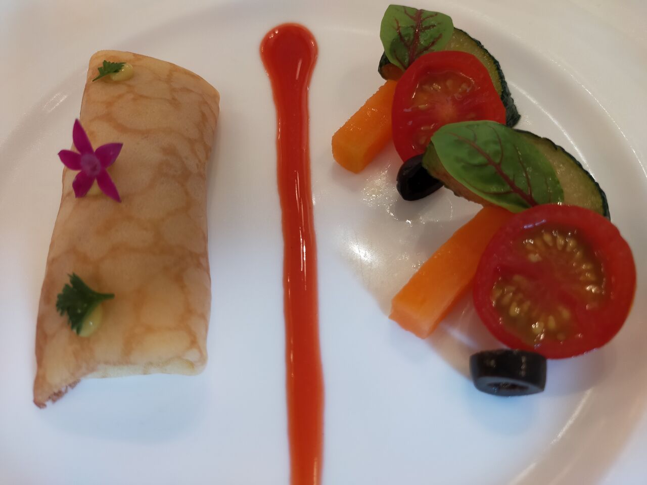ジャンボンムースのクレープ、ブラッドオレンジソース
