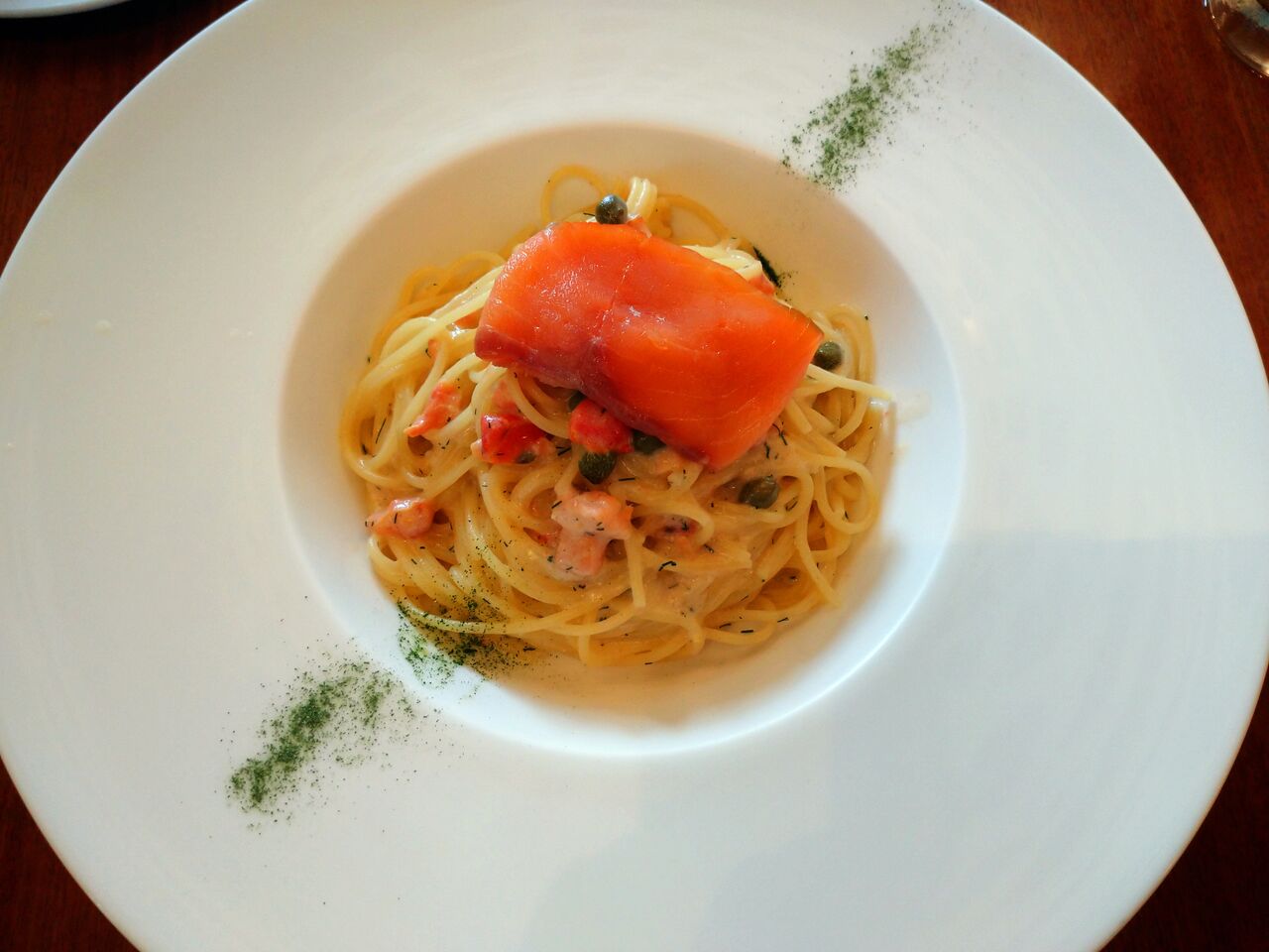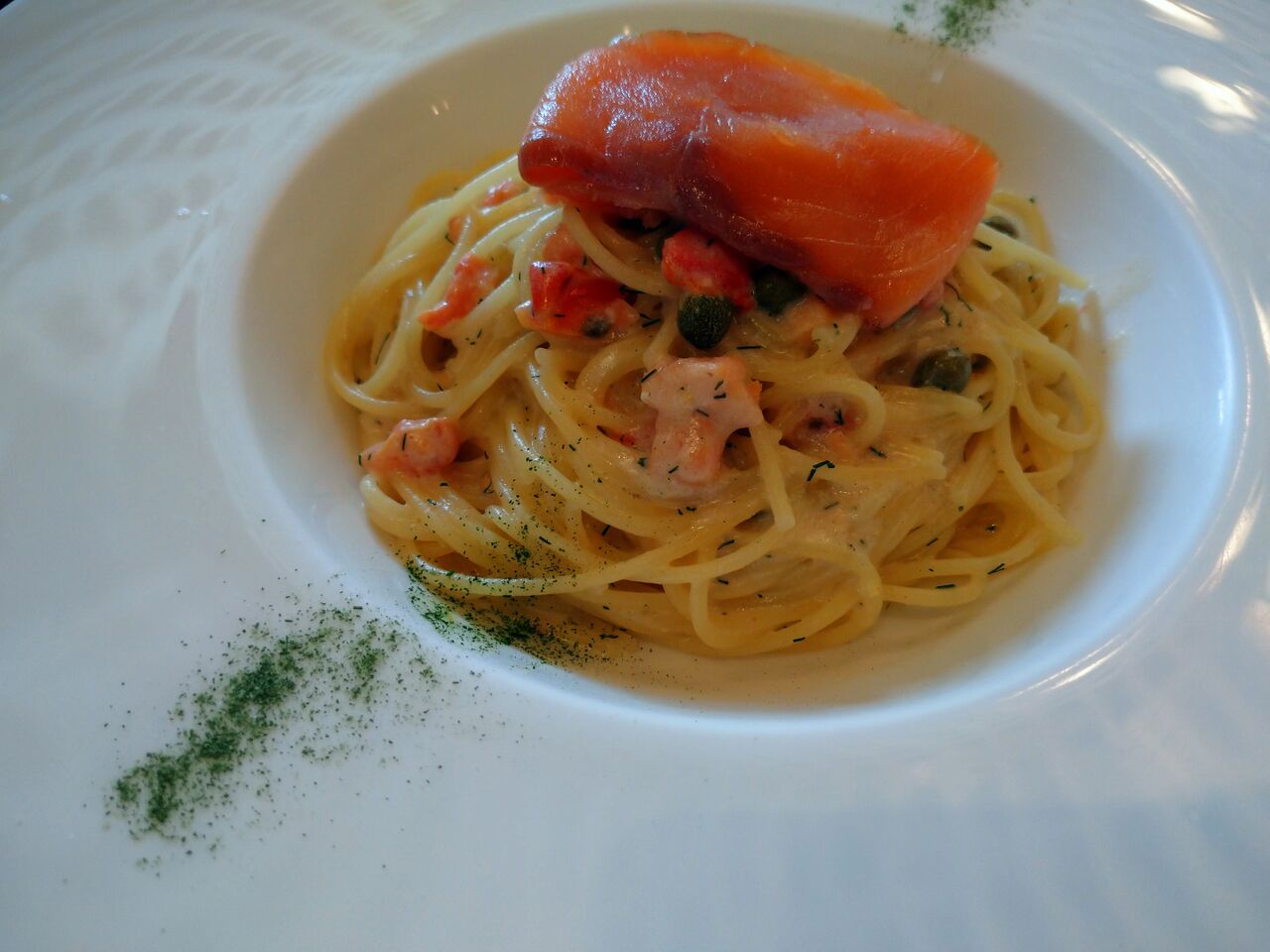スパゲッティーニ、サーモンのクリームソース