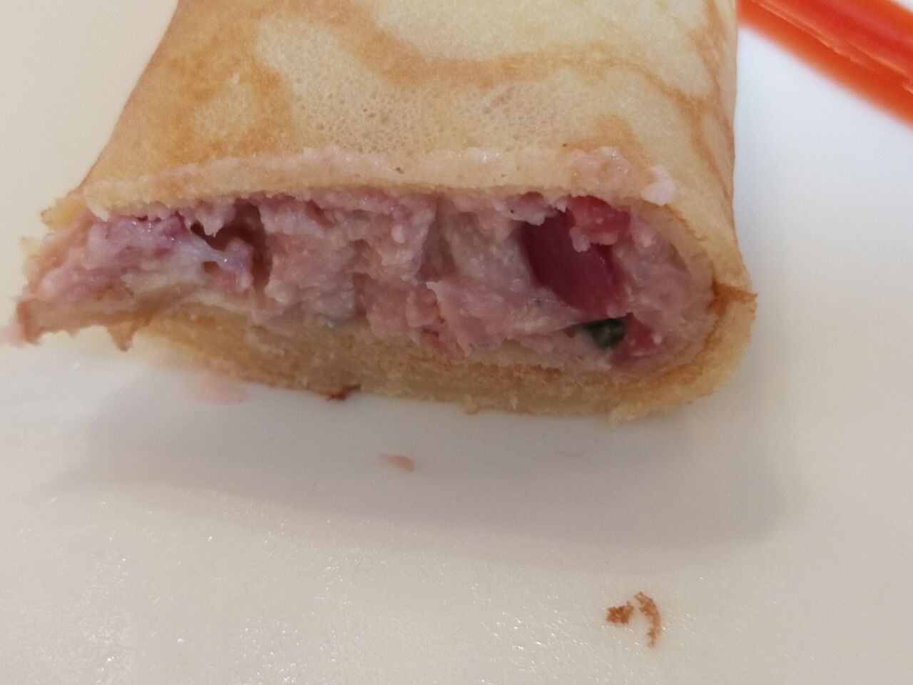 クレープの中にはハムのムースがたっぷり。