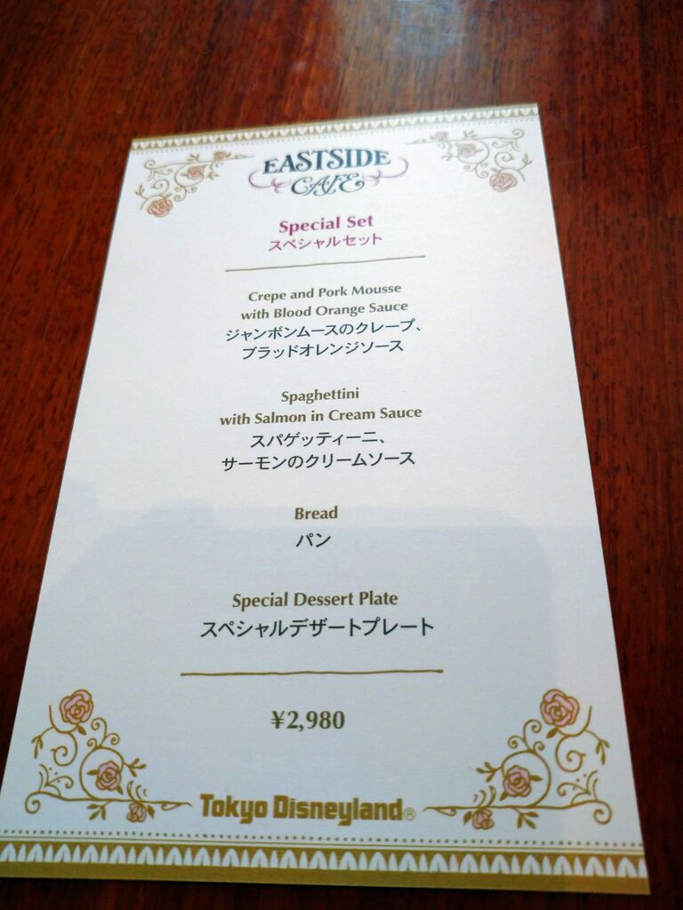 お料理の前に、美女と野獣のイラスト付きメニュー表を頂きました。