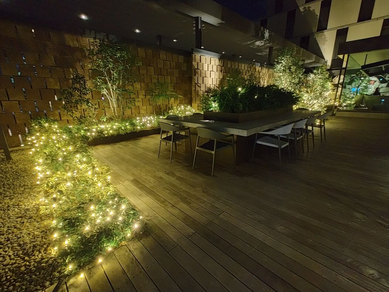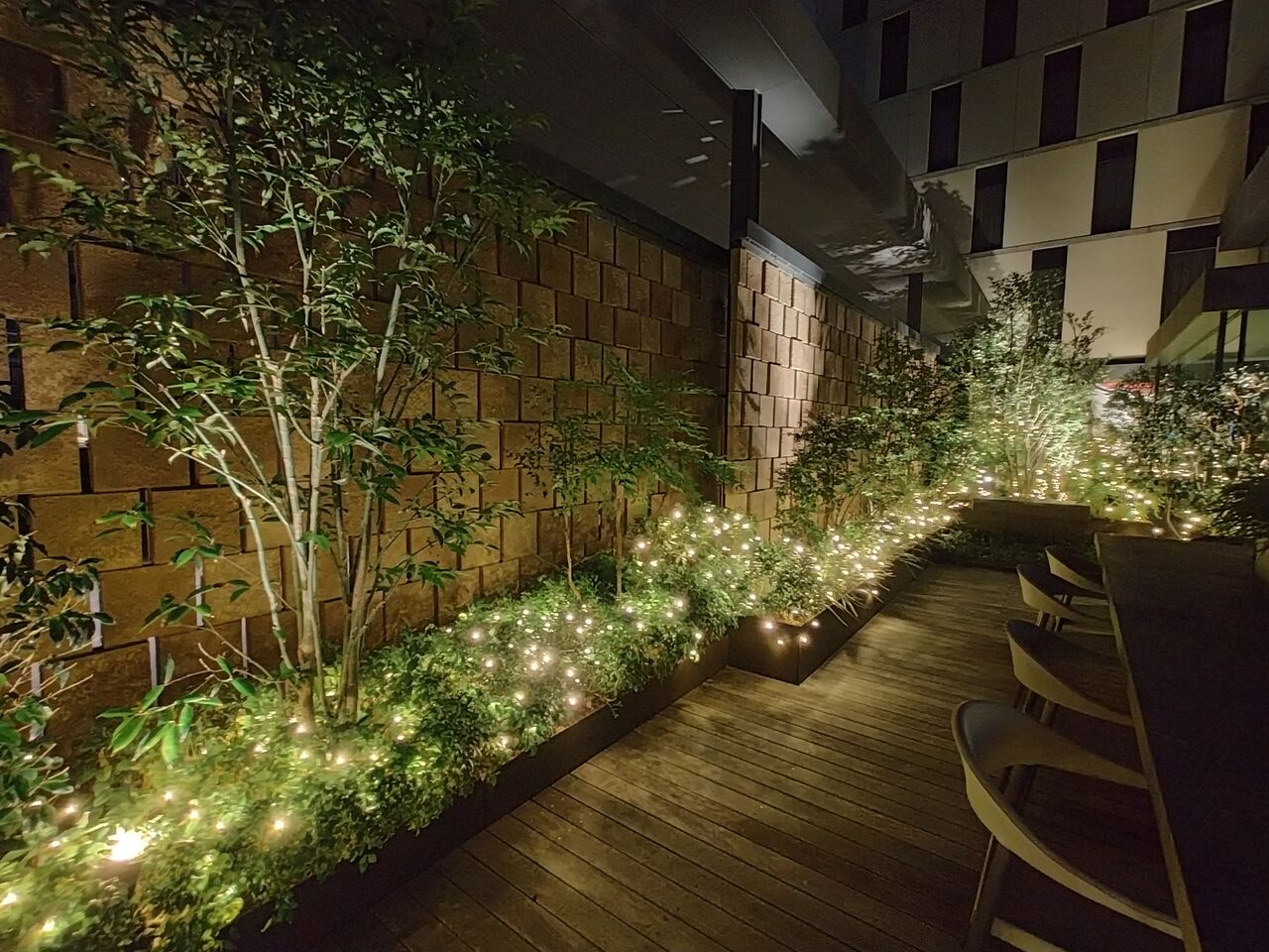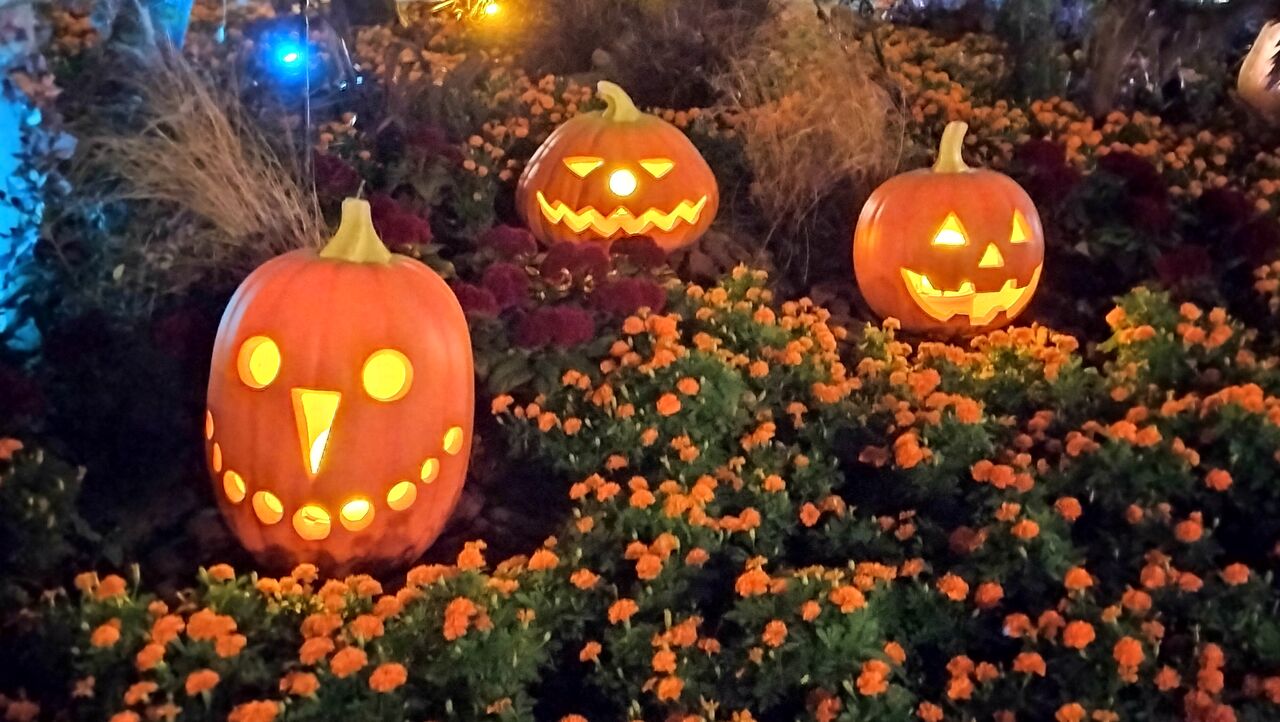 昼間はちょっとかわいい感じだったデコレーションも夜は不気味な感じ。