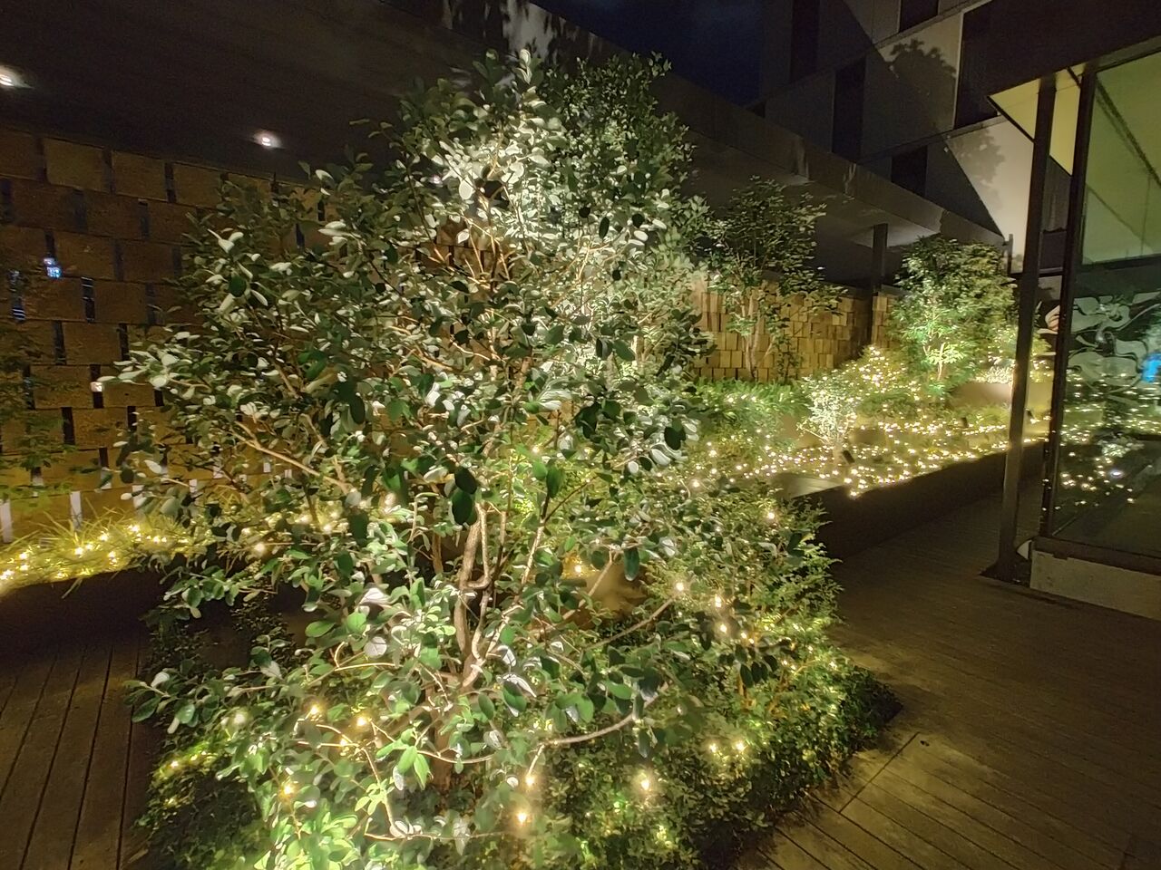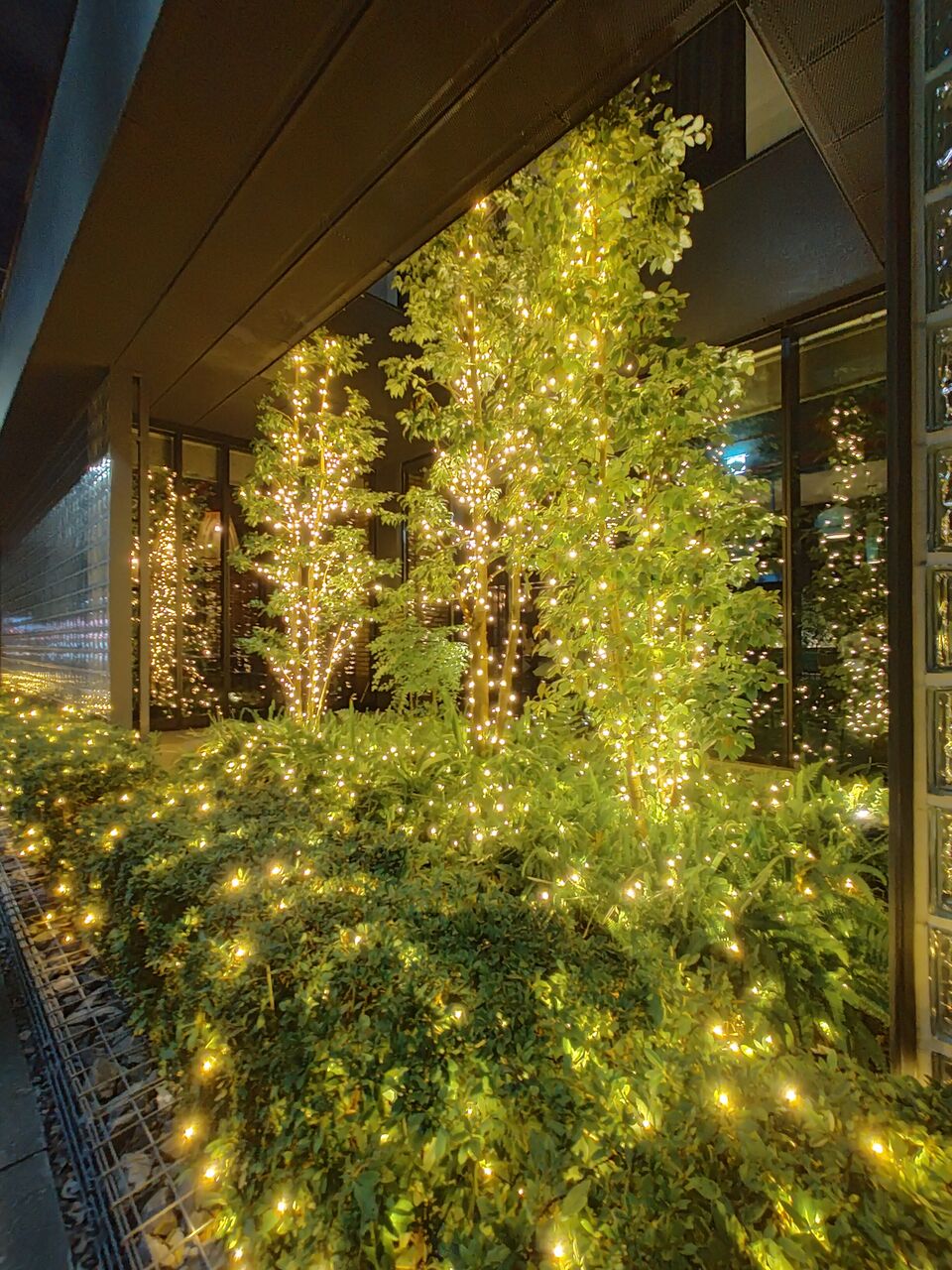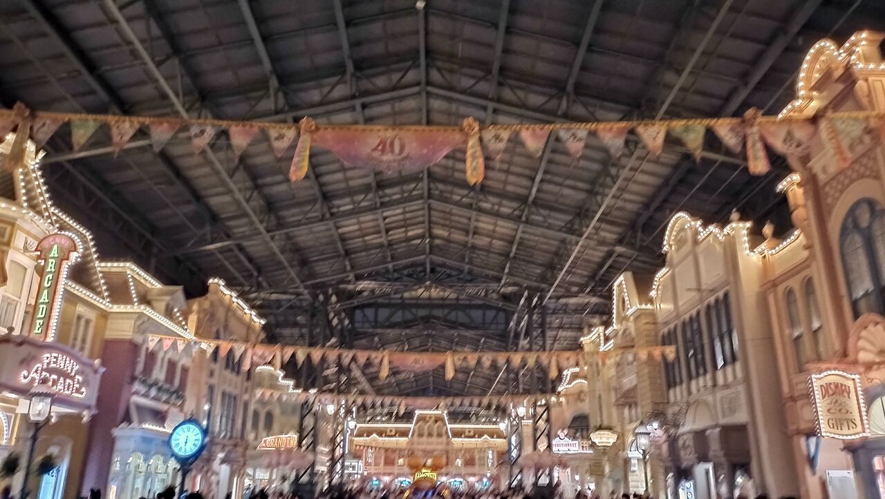 ワールドバザール入口のデコレーションもライトアップされていますが、夜はちょっと見づらいかな。