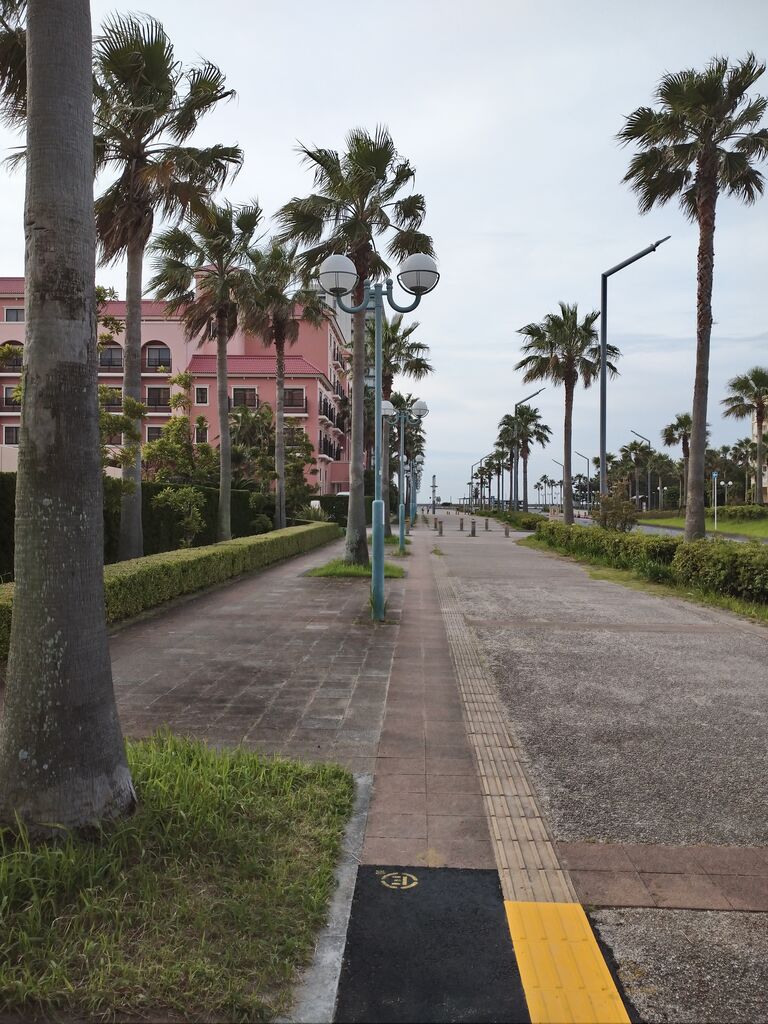 あまり変わり映えしませんが、ホテルから海へ出てぐるっと回り、三井ガーデンホテル前から戻ってくるコース。7キロ弱を1時間半弱かけて歩くのんびり散歩です。
