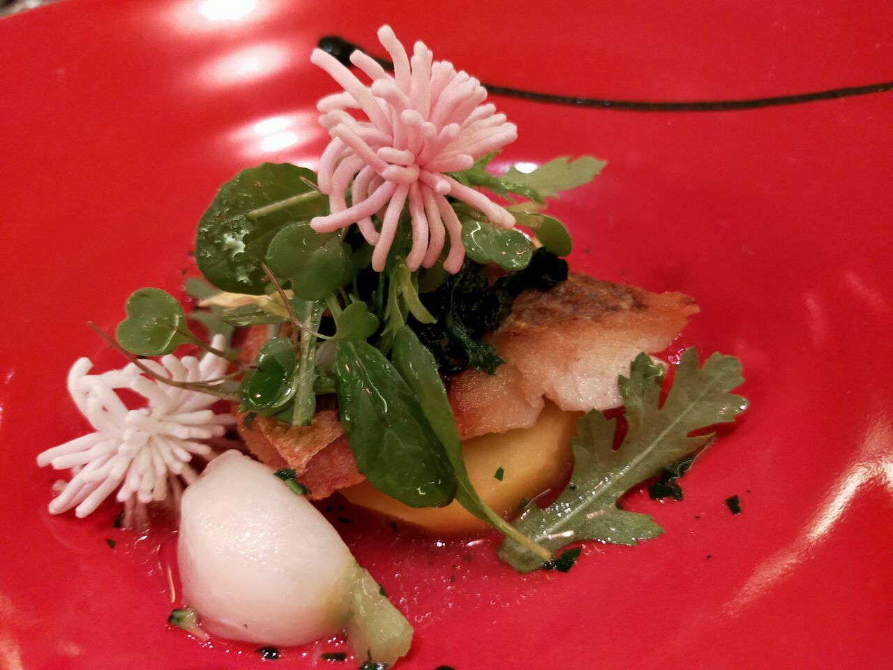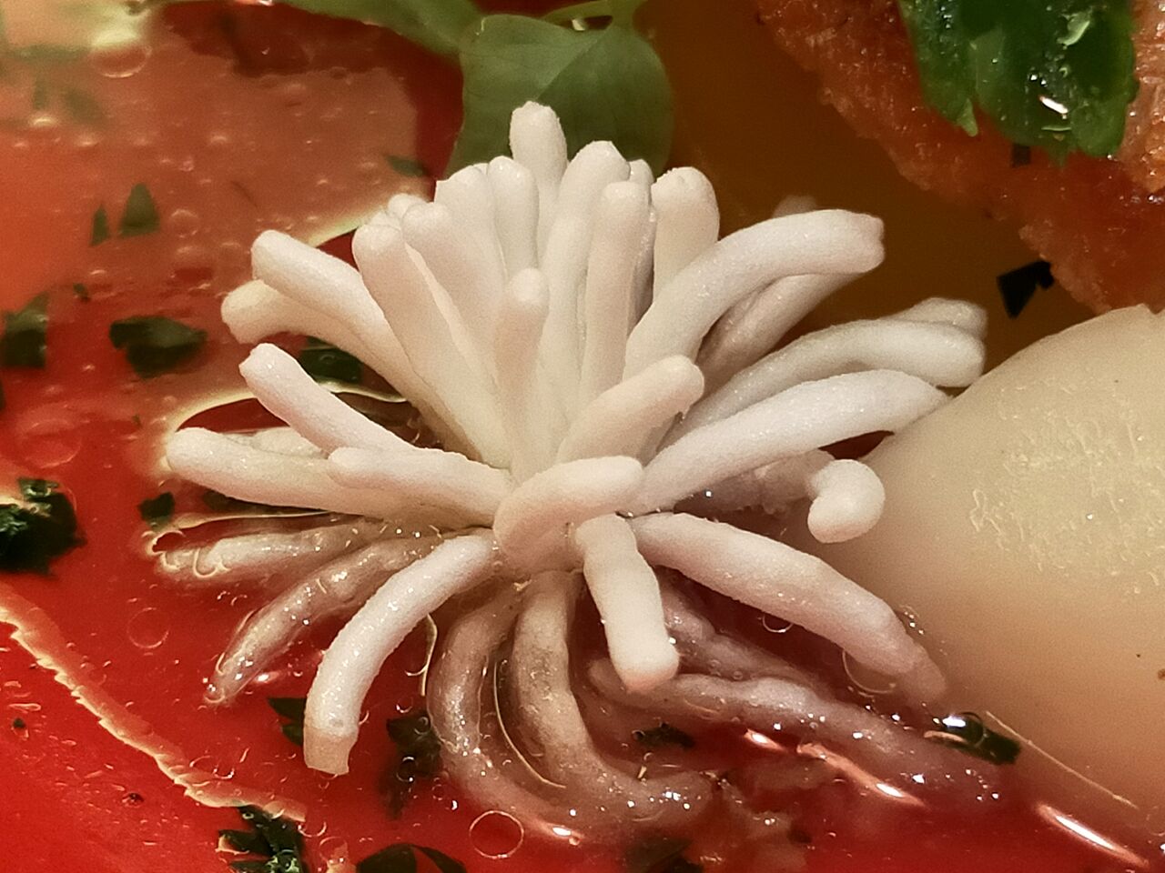 ■スモークサーモンと蕪 オリーヴパウダー チキンとアーティチョークのマリネ オニオンレーズンディップ■シーフードとトマトラグーのパスタ 彩り野菜 バジル風味のモッリーカ■本日の魚のインパデッラ 海老とイイダコ ズッパ・ディ・ペッシェまたはポークフィレ肉のアッロースト クルミのサルサ ポークのブラザート 白インゲン豆のピュレ■ティラミス みかんソルベ■コーヒー または 紅茶