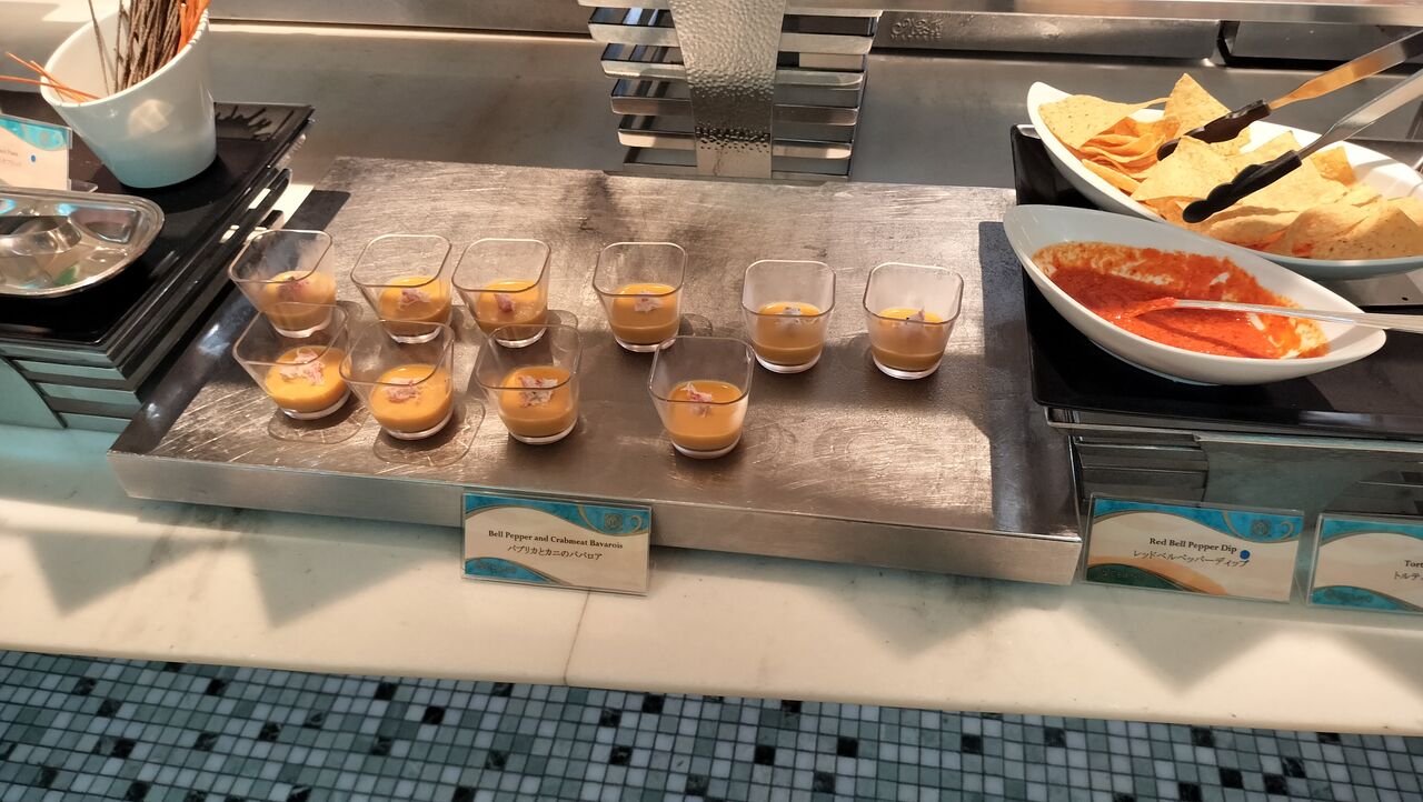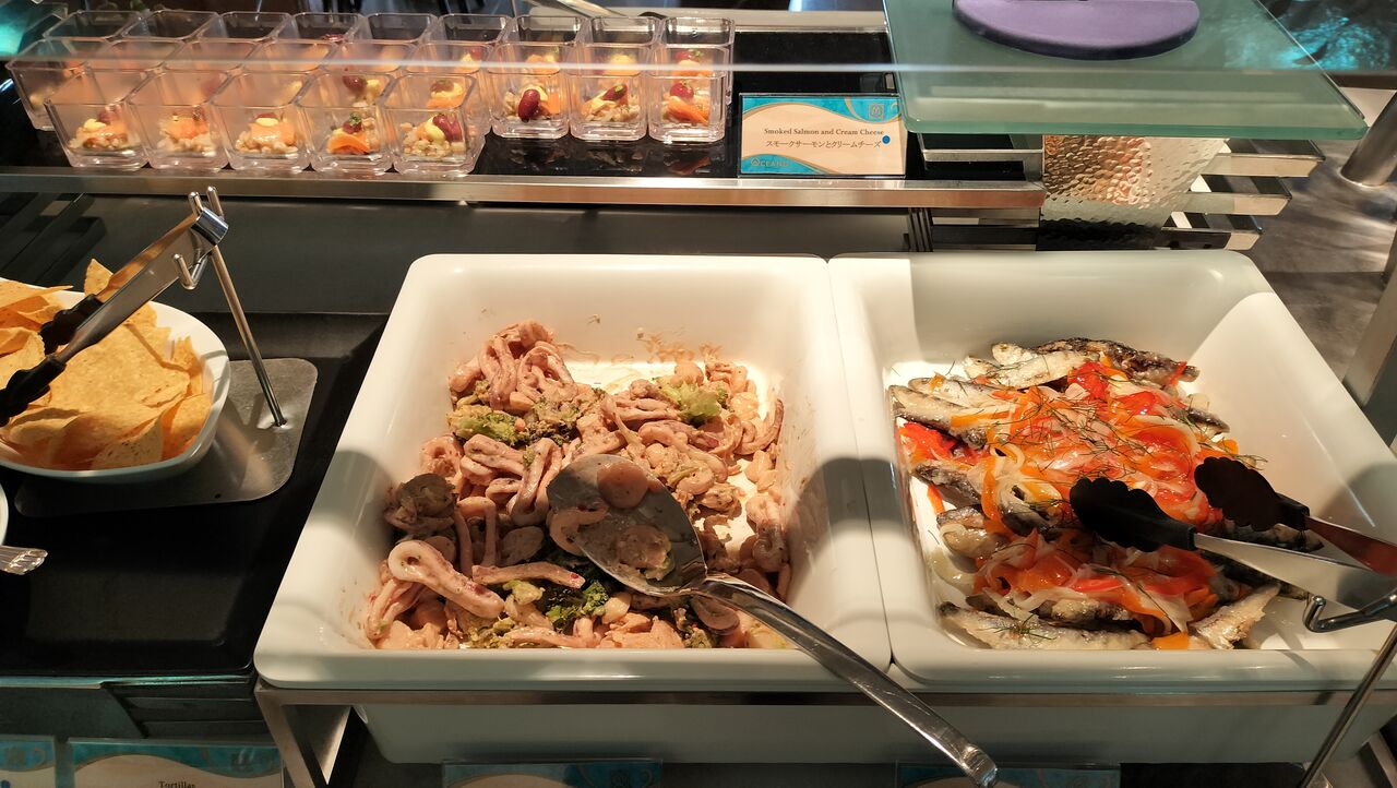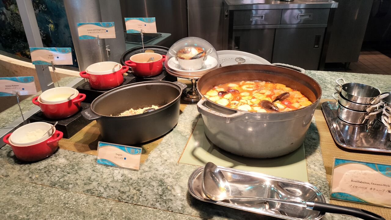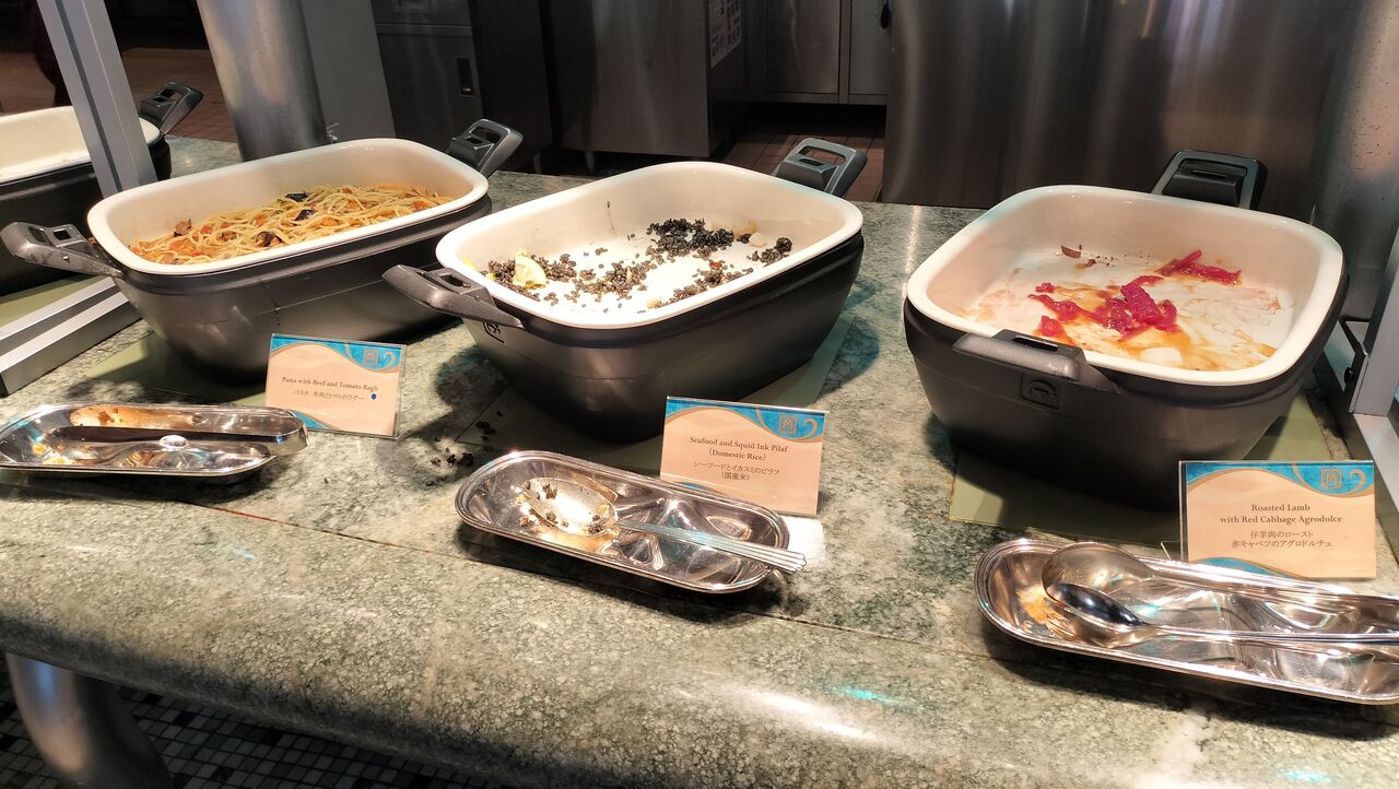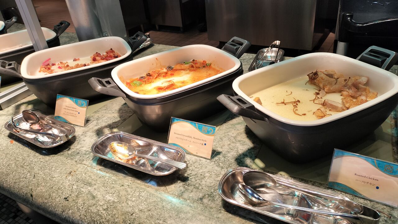 時間帯によってはハーバーグリーティングが鑑賞できるオチェーアノのブッフェ。