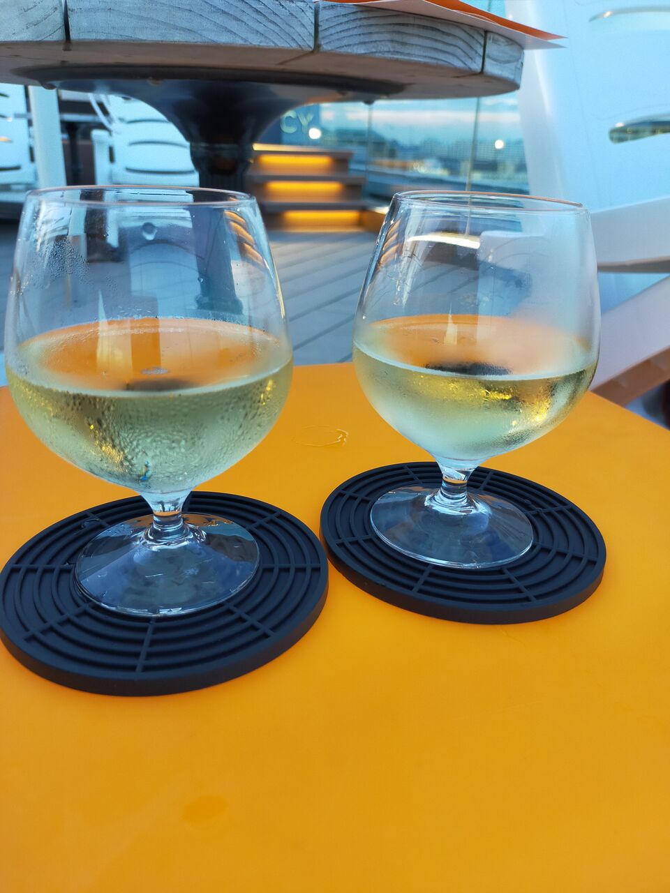 少し暮れてきた空とカラフルかカクテルがキレイです。