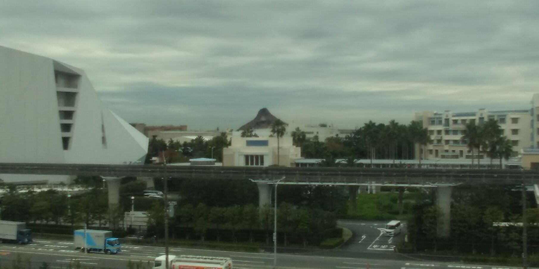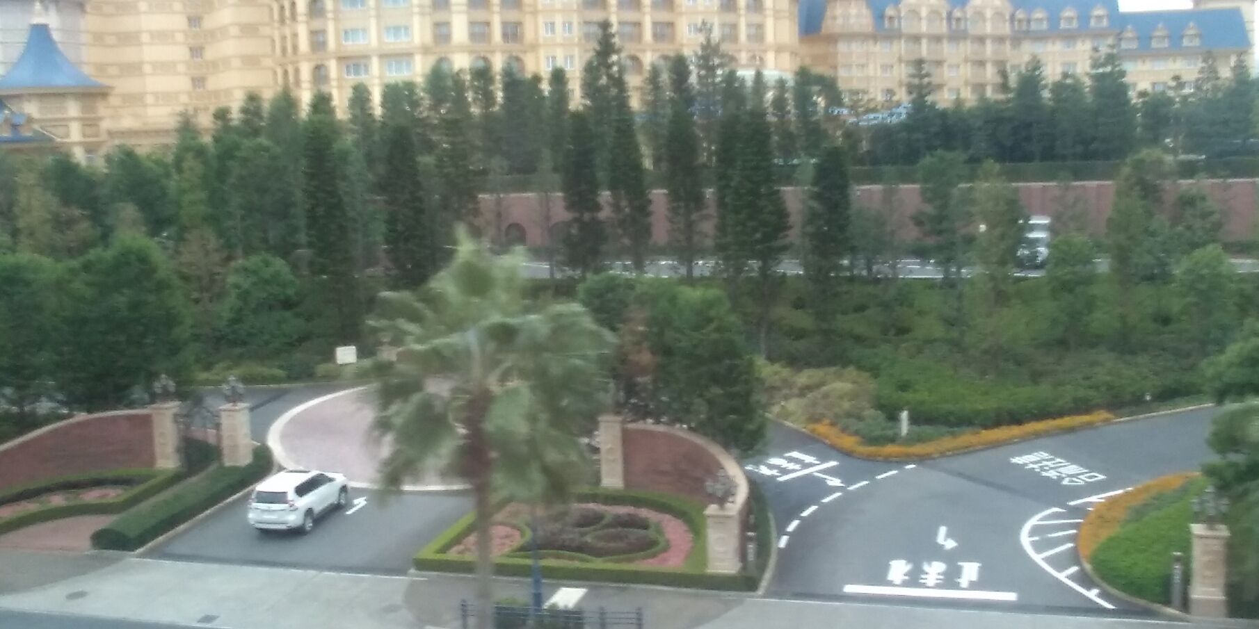 さて、今朝の京葉線上り電車から窓越しに撮影する舞浜駅周辺