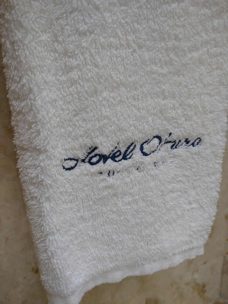 タオルにはすべて ホテルオークラの文字が刺繍されています。