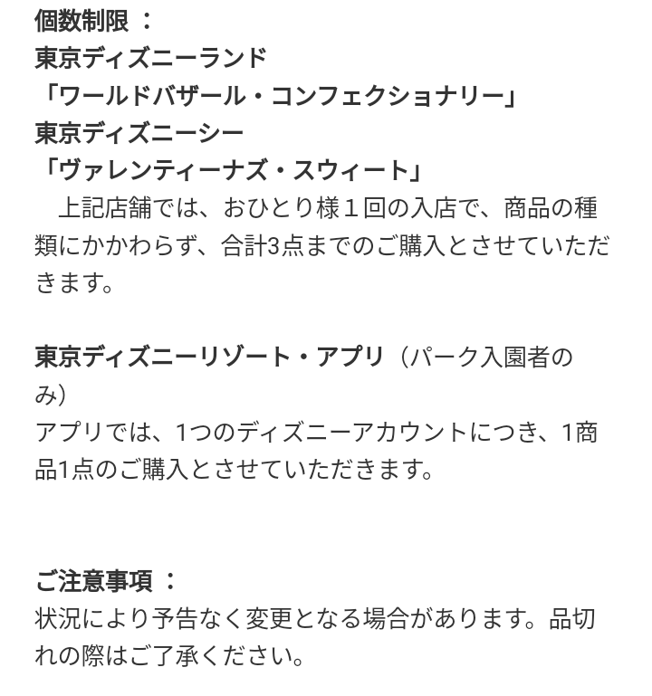 東京ディズニーリゾート・アプリ (パーク入園者のみ)での購入は1アカウントで1商品1個の制限あり。
