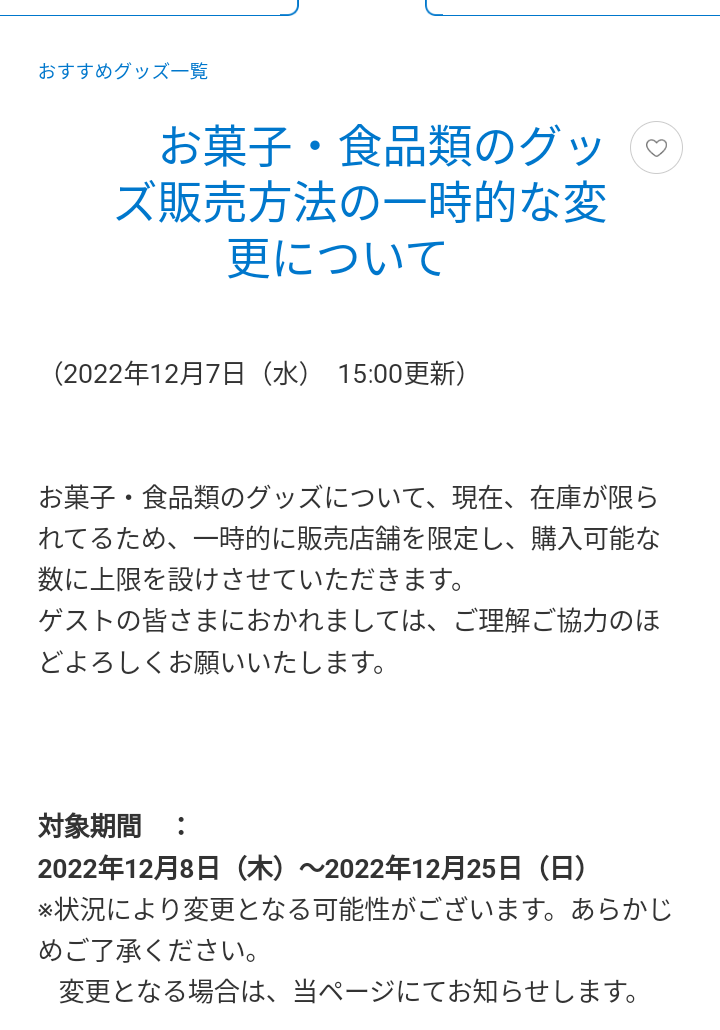 11月末にディズニーランドに行ったときは、少し復活してきたのかな?という印象を受けたし、お正月パッケージのお菓子類も販売開始になったので大丈夫なのかな?と思ってましたが、不足なんですね。