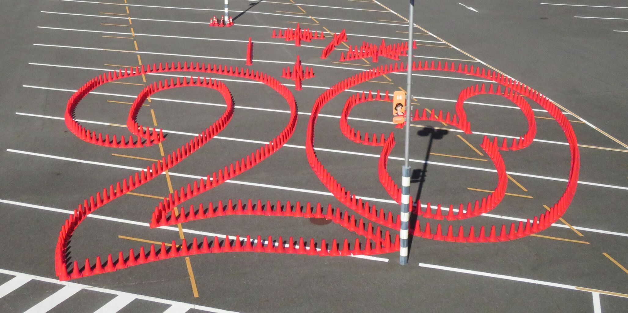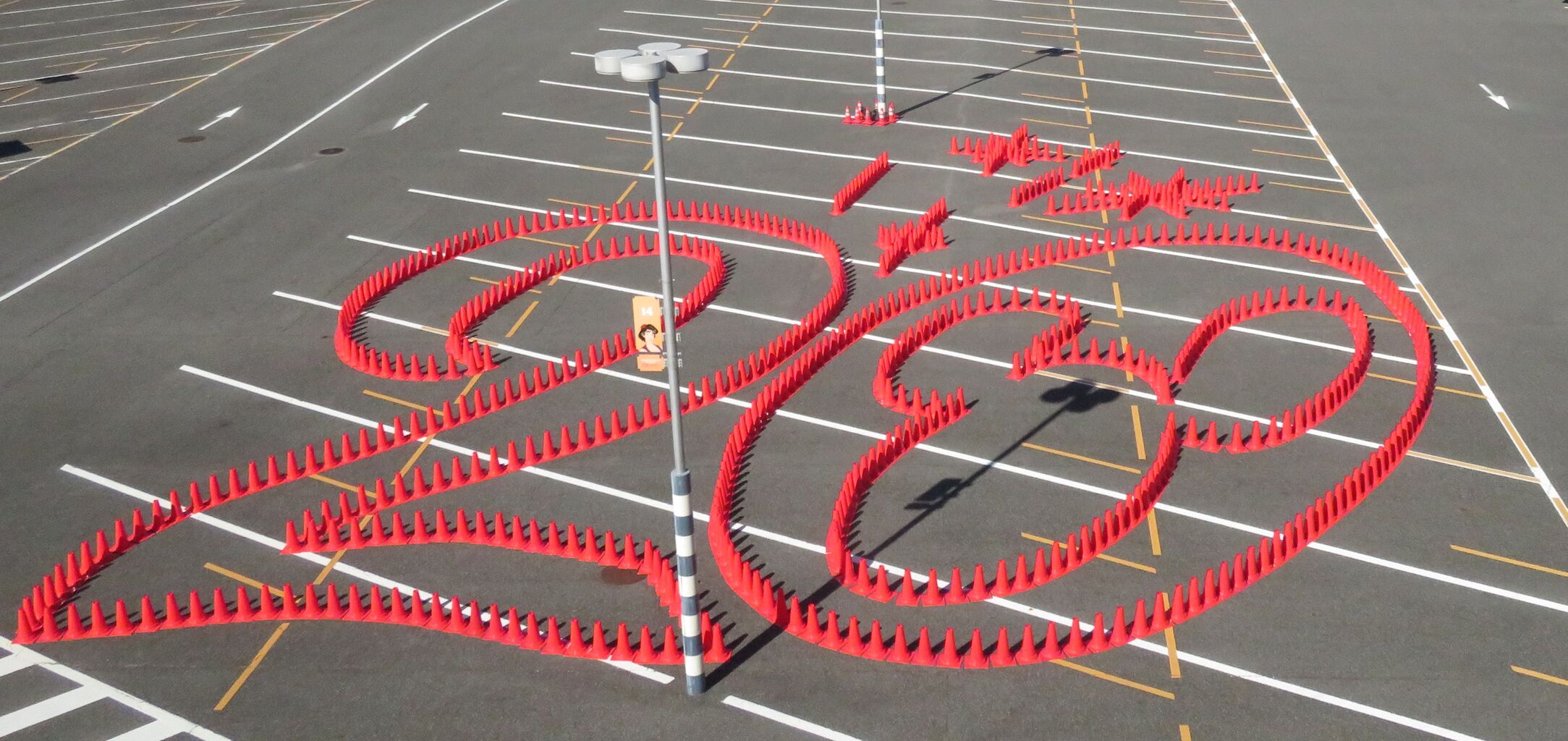 駐車場の一部スペースを使ってのカラーコーンアート。