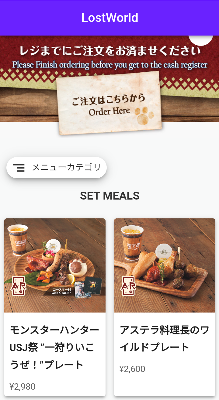 モンハン飯のAR対象メニューは、テーブルに設置されているQRコードを読み込んでAR演出を楽しめるんですが・・・