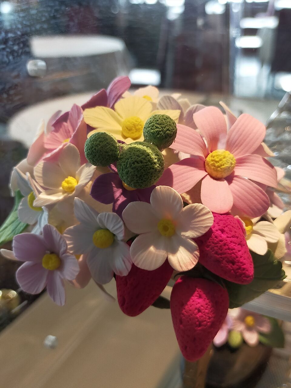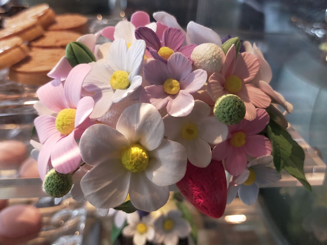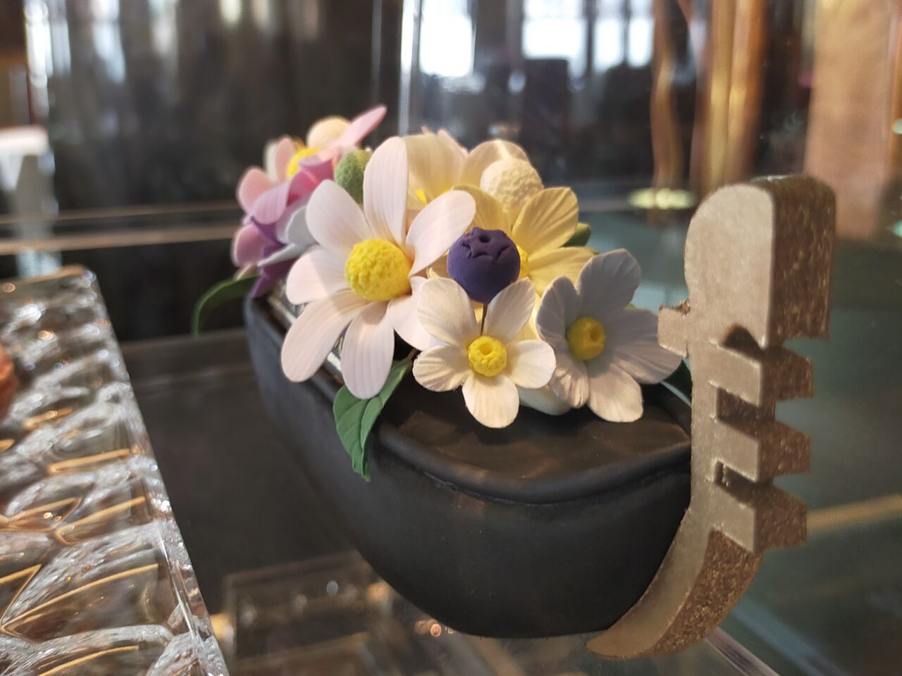 注文後の少し待つ間、まだ他のゲストがいなかったこともあって、店内にディスプレイされていたプティフールの台を撮影しませんか?とキャストさんにお声掛け頂き、先に見せて頂きました。