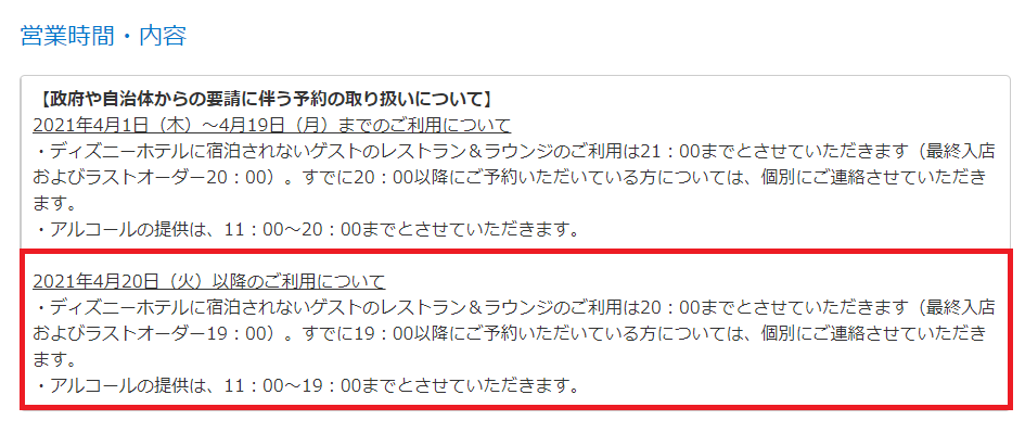 明日4/20からTDRのある浦安市が「まんえん防止等重点措置」の適用となることをうけて、公式からいくつかのは発表がありました。