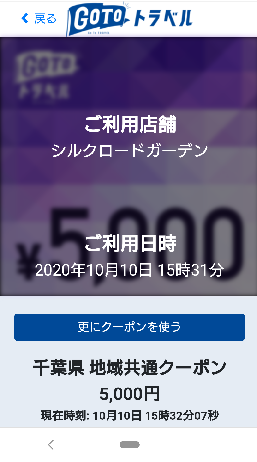 今回は5,000円全額使い切ったので、一番下に「利用済みです」とあります。