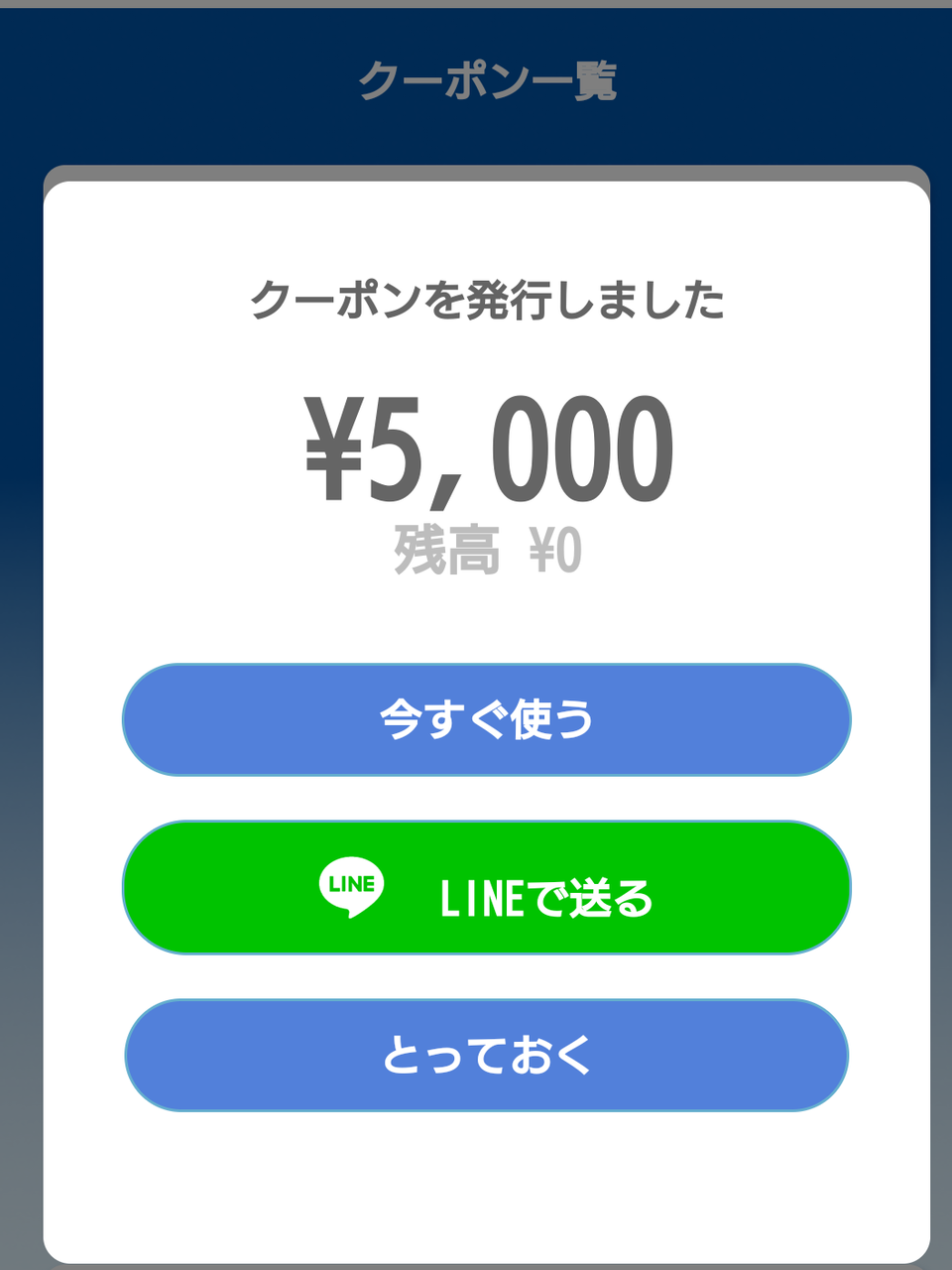 「今すぐ使う」「LINEで送る」「とっておく」が選べます。