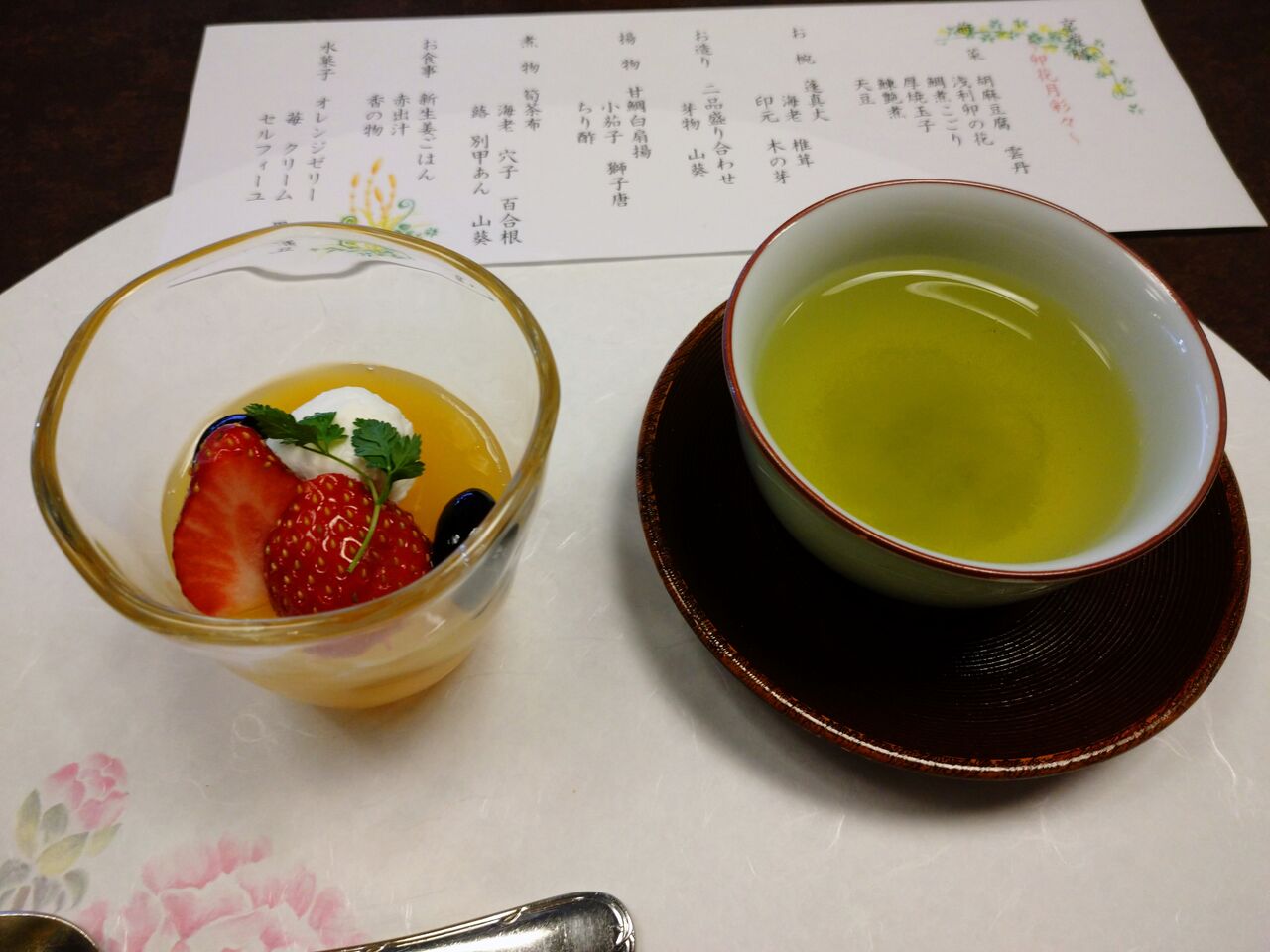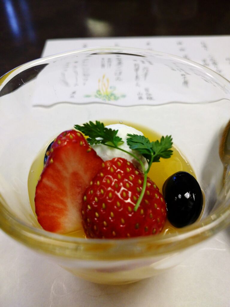会席のゼリーはオレンジでしたが、こちらはグレープフルーツゼリーでした。