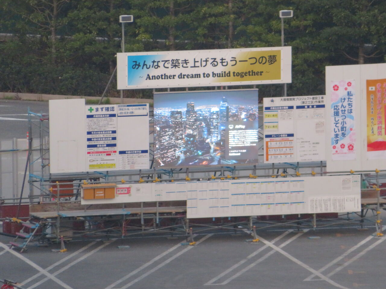 目の前は完全に工事現場ビューです