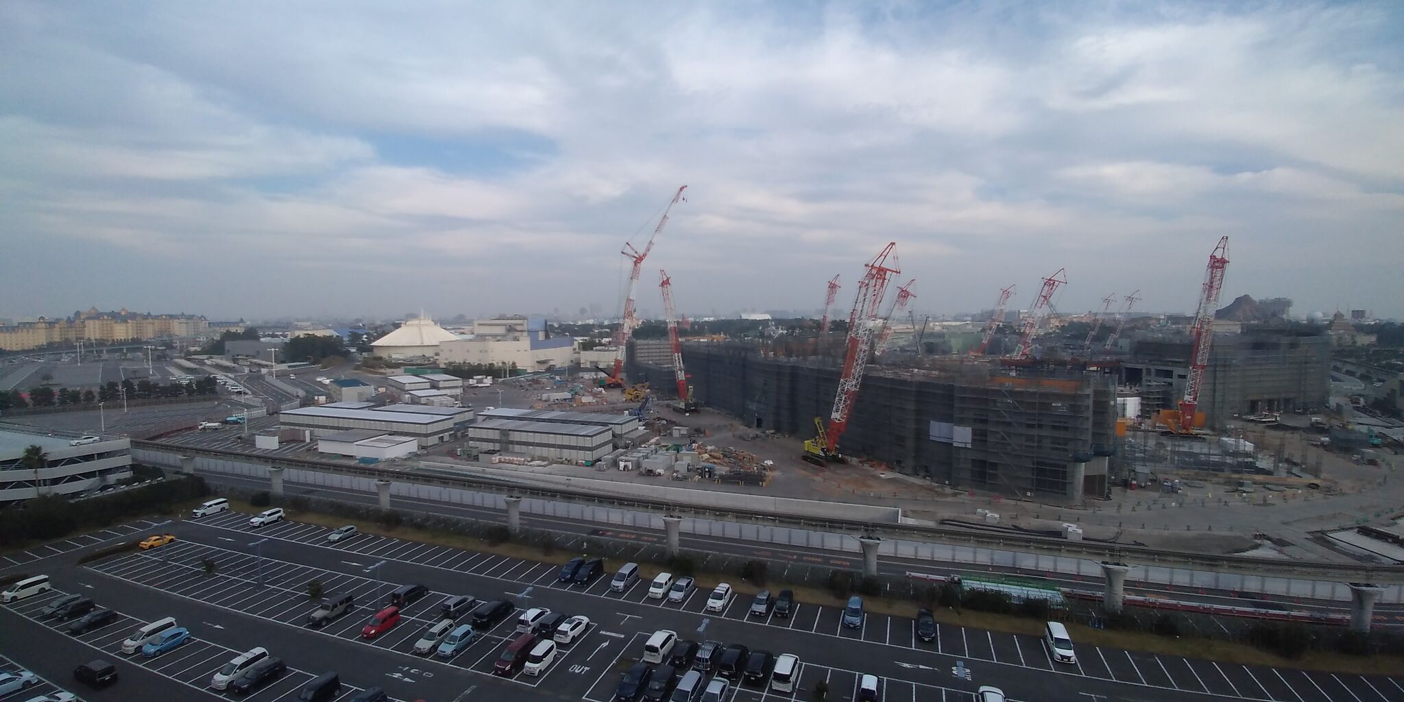 クレーン越しのシンデレラ城