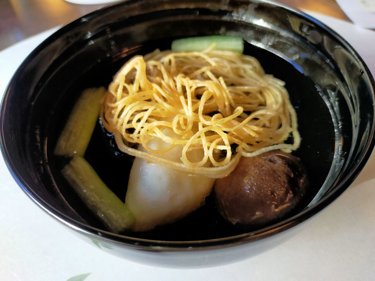 そうめんを揚げたものの食感が楽しいお椀。あったまります。