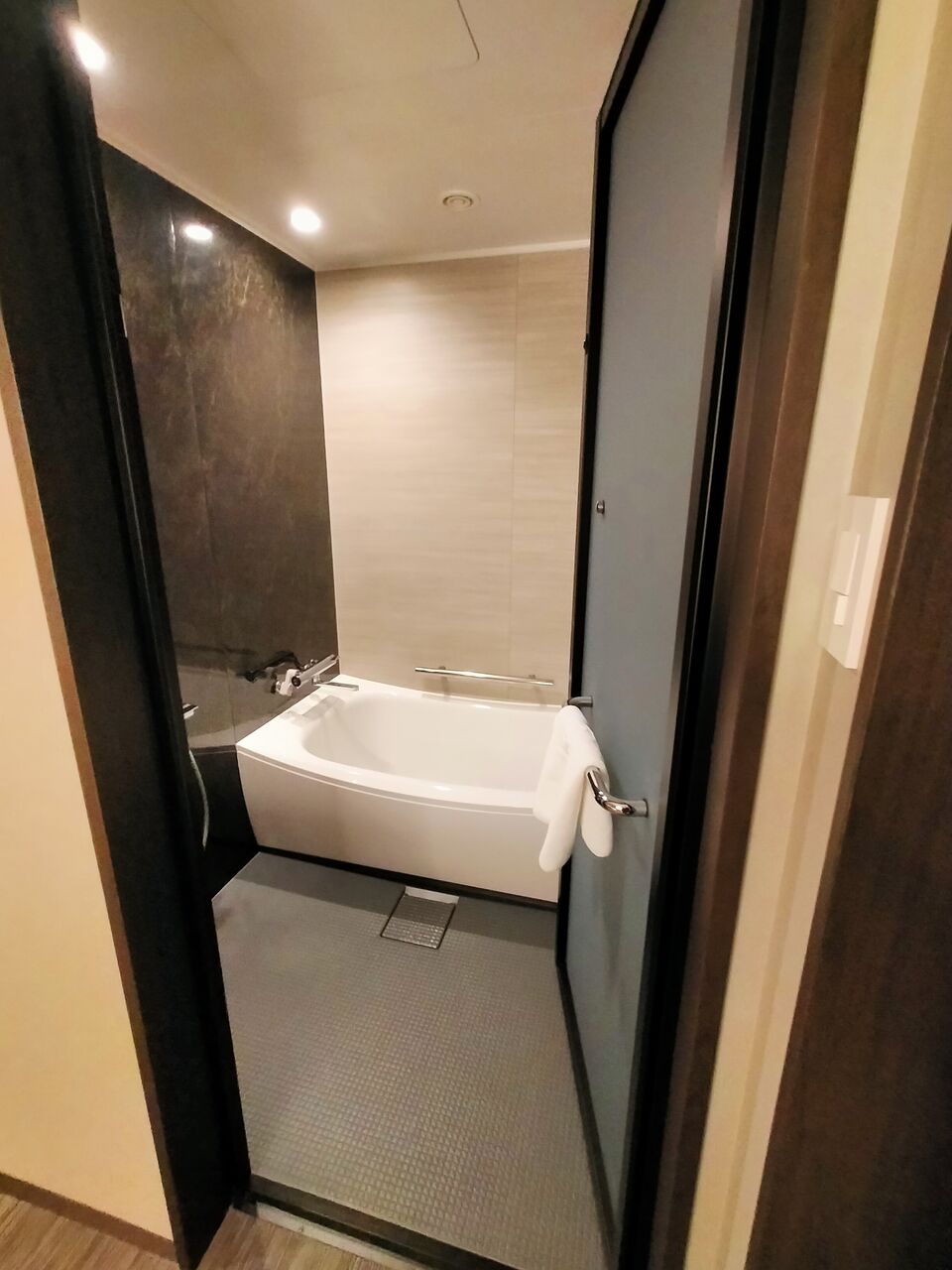 部屋の構造上脱衣スペースがないので、ベッドスペースとの間に扉があり閉められるようになっています。