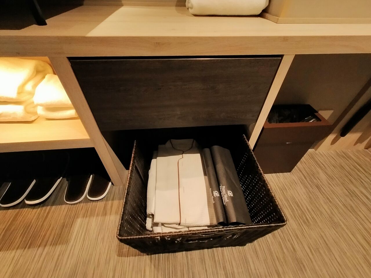 ルームウェアと大浴場に行くときに使える袋は籠の中。