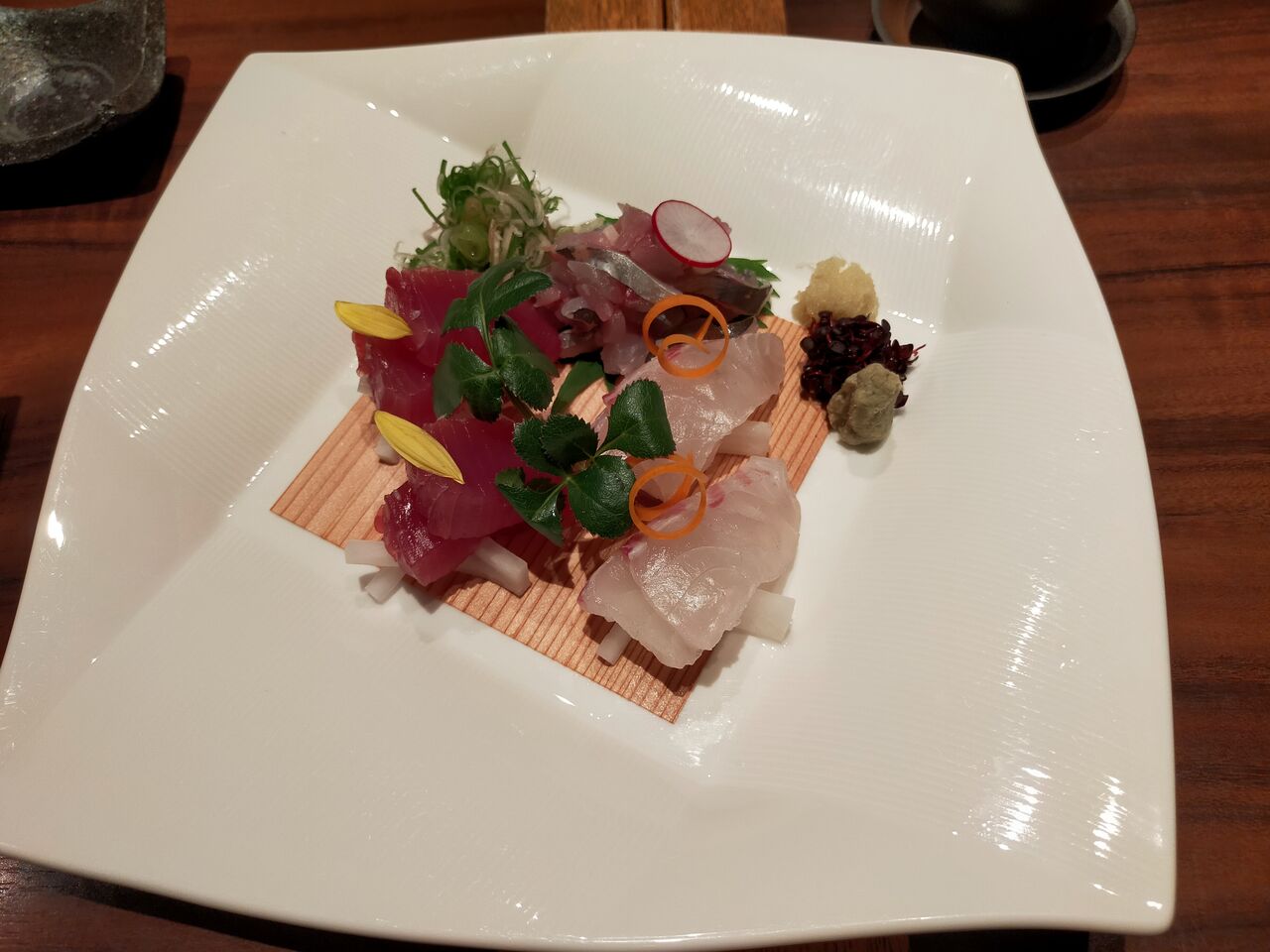 薬味にわさびと生姜があるので、小皿に入った醤油を二つ用意してくれるのが凄い。