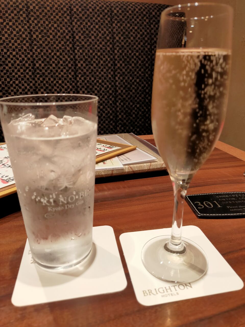 最初の1杯は スパークリングワインとジャパニーズクラフトジン「季の美」をジントニックで。