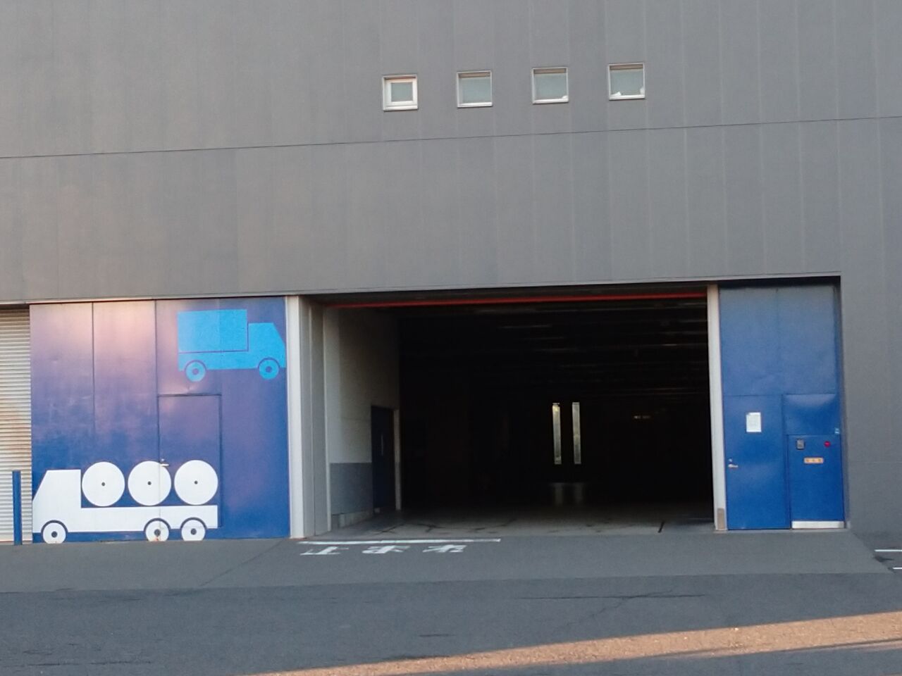 倉庫扉のトラックの荷台は紙のロールだ!!