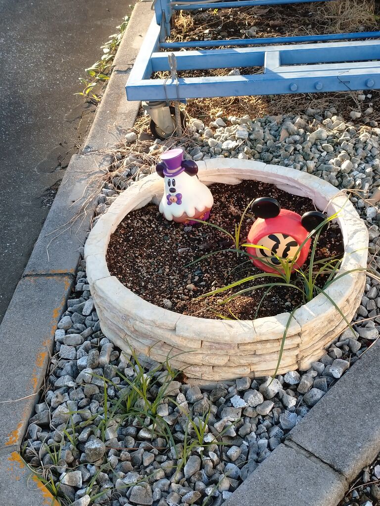 道端のちょこっとディズニー。先取しすぎな雪だるまミッキー&正月だるまミッキー