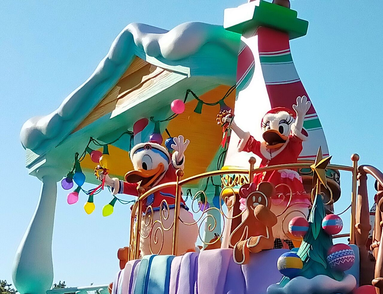 クリスマスの音楽と共にフロート