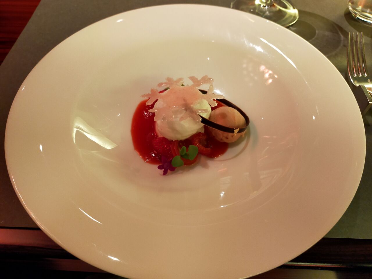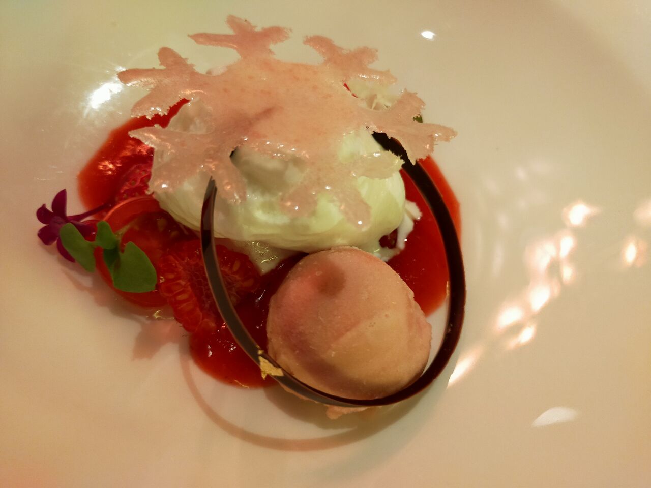 柚子風味のウフアラネージュ イチゴとトマトのソルベ